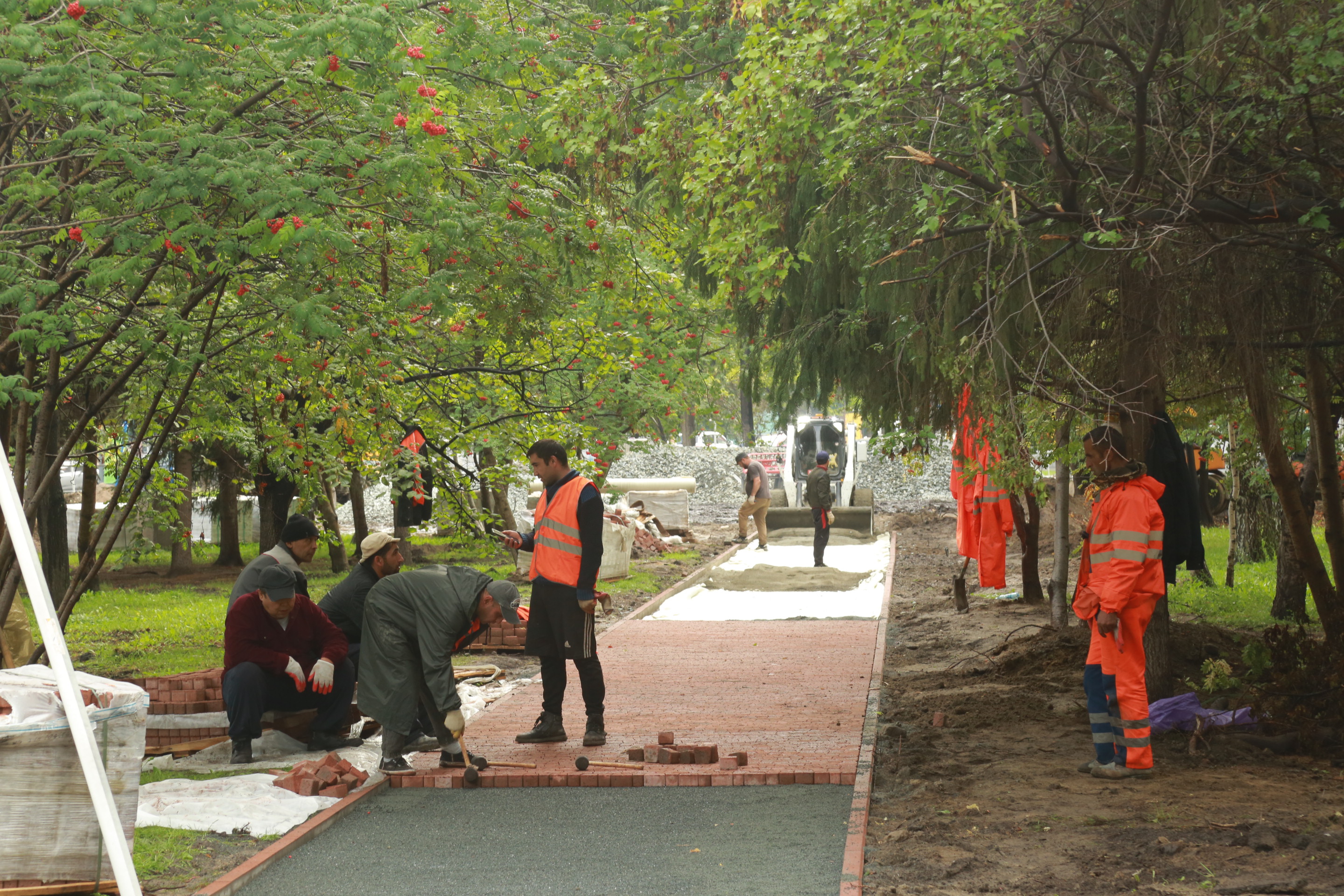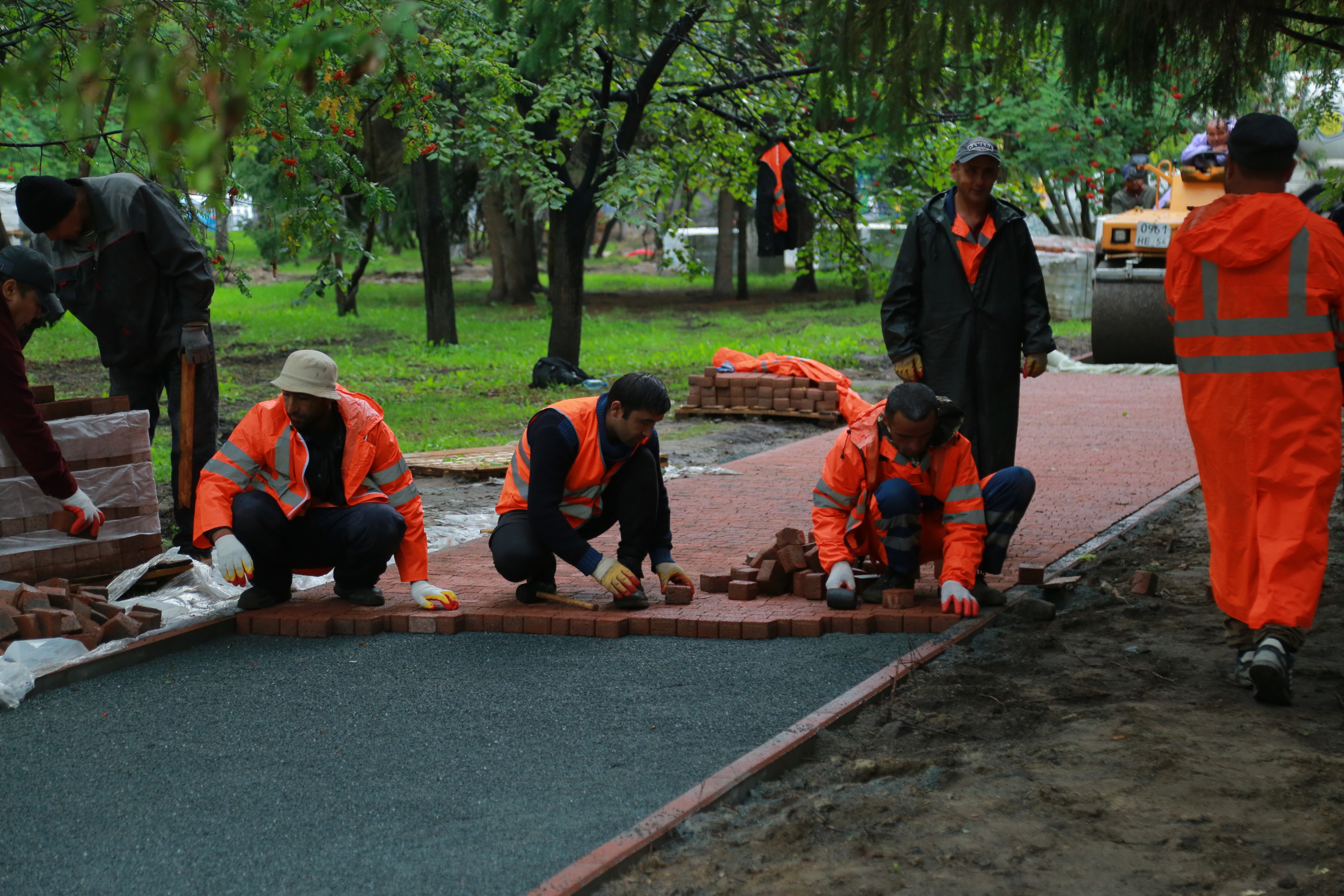 Красную тротуарную плитку в Первомайском сквере уложат к концу сентября