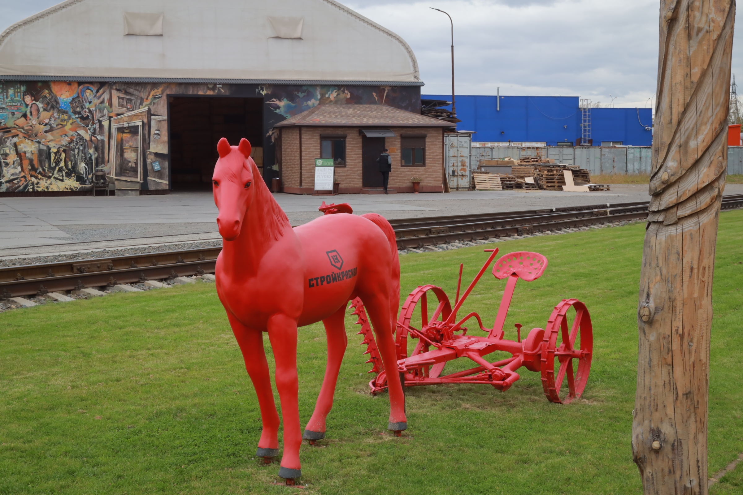 Красный конь, Дед Щукарь, божья коровка с граблями, а также два новых мурала по мотивам песен Виктора Цоя появились в сквере на Сибиряков-Гвардейцев, 47.