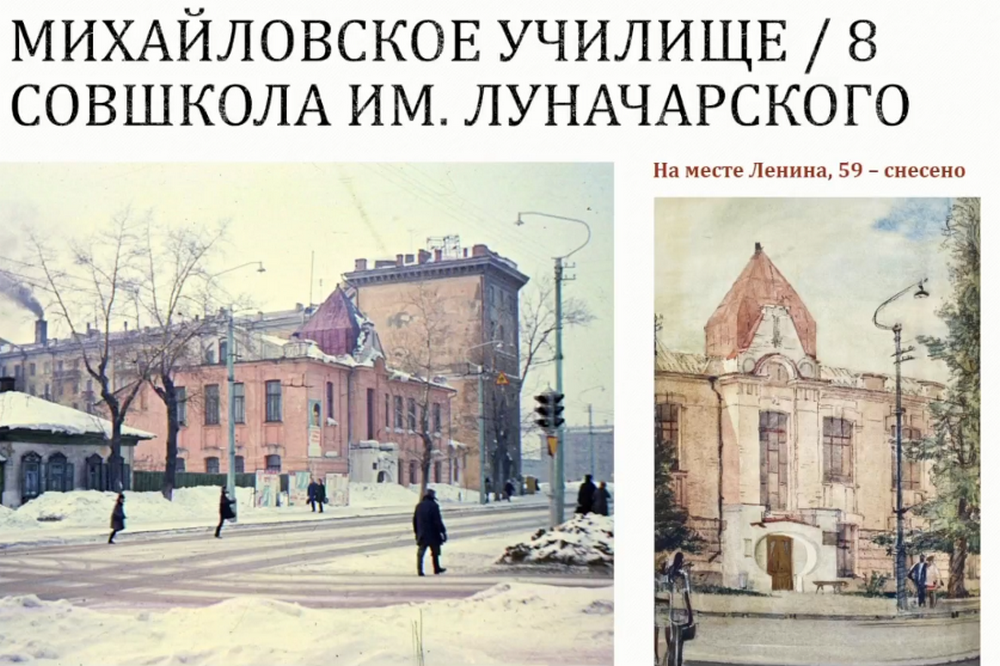 Современный адрес — Ядринцевская, 66. Сейчас в здании находится Театральный институт.