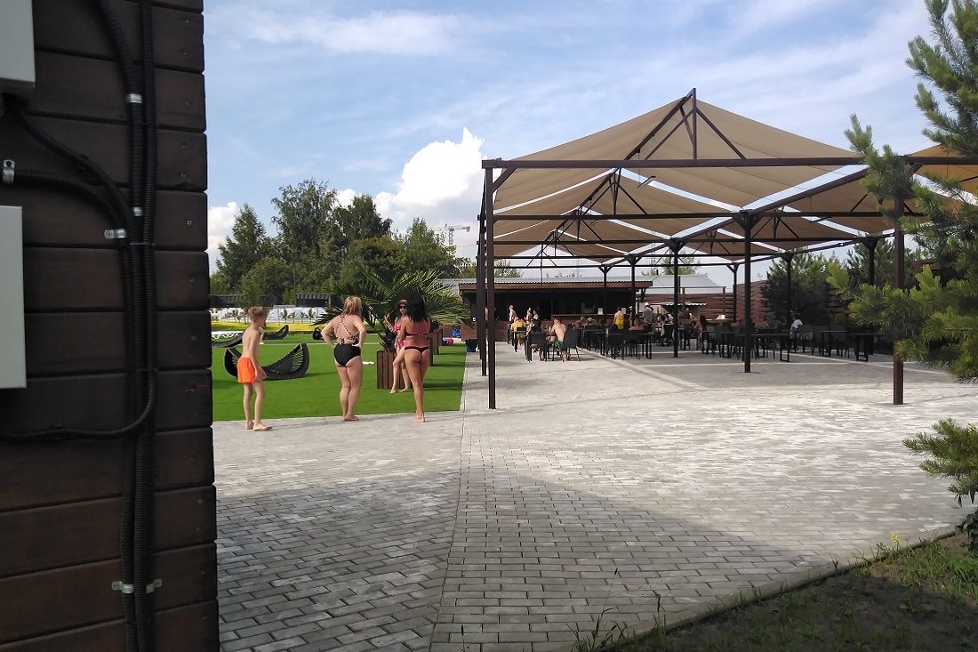 Этим летом рядом с будущей постройкой открыли акватермальный центр Splash (с английского «всплеск») с бассейнами, горками для детей, кафе и шезлонгами. Эта зона вместе с ледовым комплексом «Айсберг» занимает площадку размером 25 661 кв. метр в границах улицы Петухова и Советского шоссе.