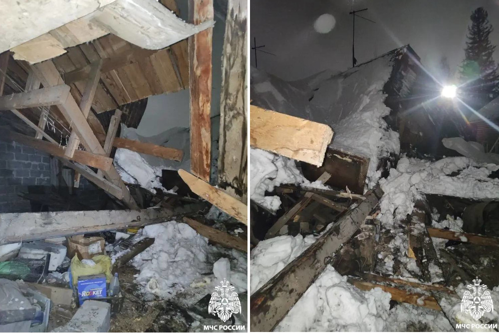 «Предварительно установлено, что обрушение произошло вследствие значительного скопления снежных масс. Площадь обрушения составила около 180 квадратных метров», — отмечается в сообщении.