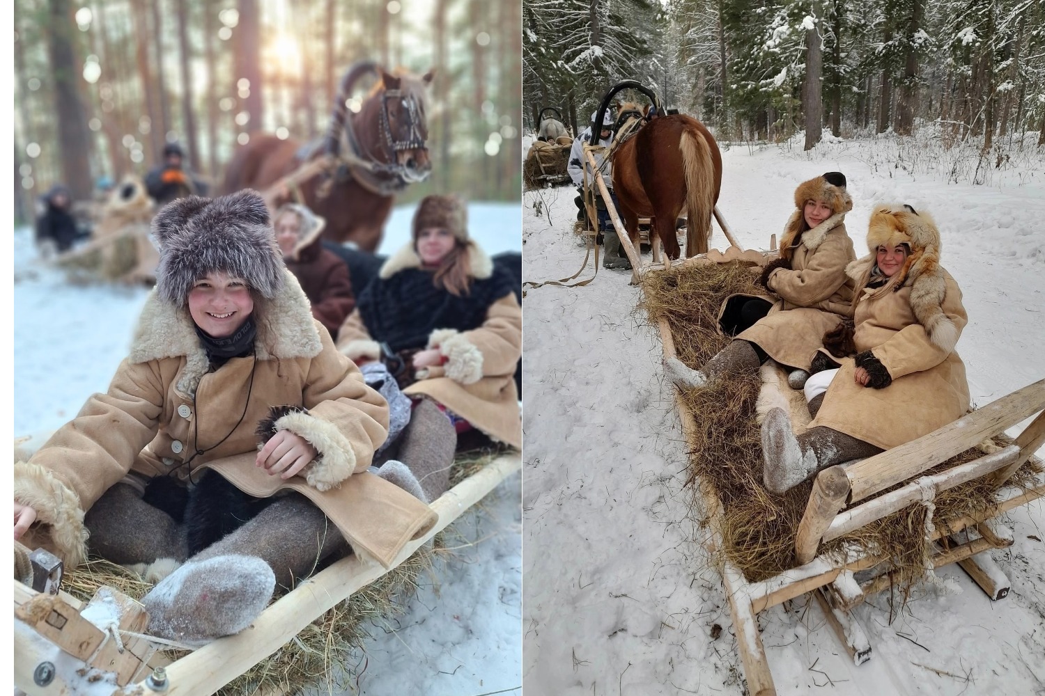«Мы остановимся в срубной избе, выпьем чая из самовара на углях, облачимся в непроницаемые для любого ветра и холода овчинные тулупы, погрузимся в сани и отправимся кататься», — отмечают организаторы экскурсии — «Территория Сибири».