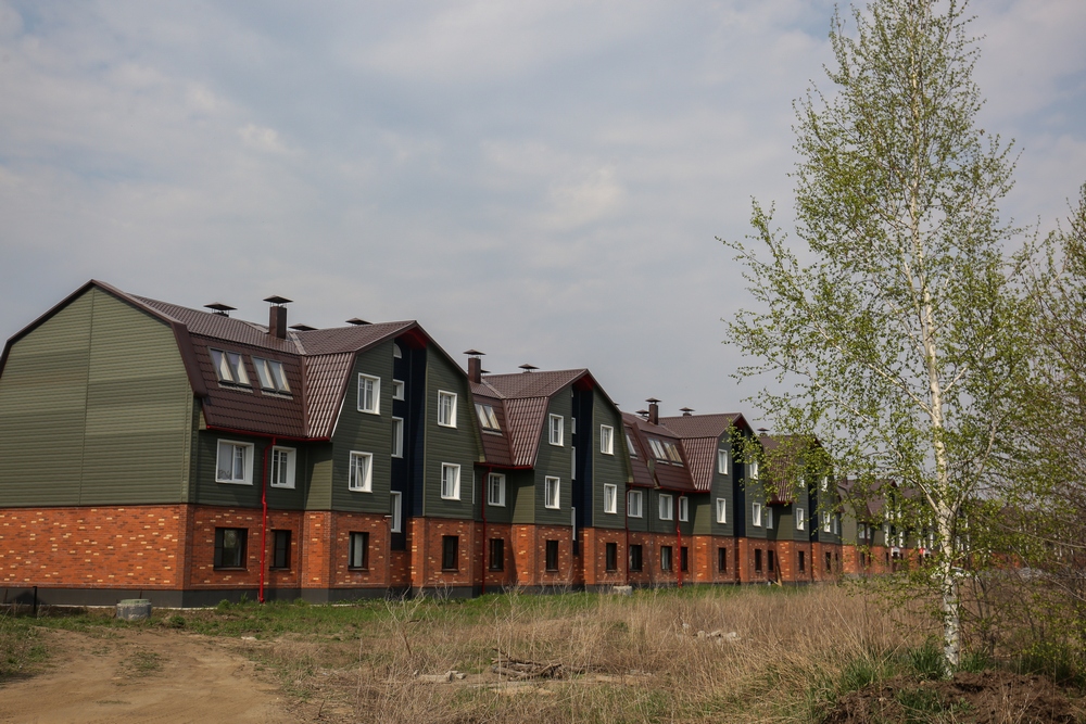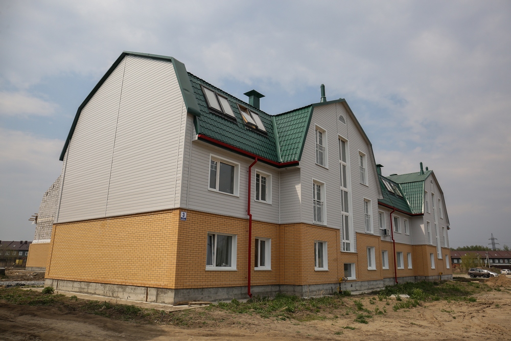 Квартал Джобса — это двухэтажные многоквартирные дома с мансардами. Они отделаны серой вагонкой и жёлтым однотонным кирпичом. Две новостройки уже заселили. Всего в квартале Джобса будет семь домов.