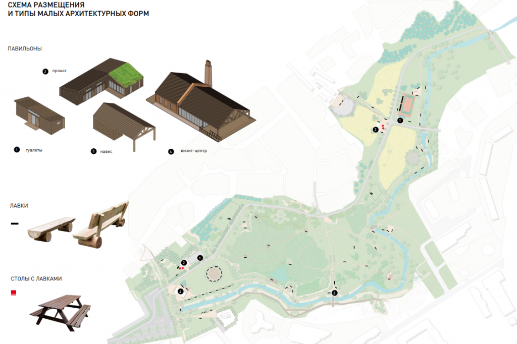 За полтора года подрядчик должен благоустроить территорию парка, проложить дорожно-тропиночную сеть, а также возвести павильон визит-центра в виде старого кирпичного завода, два павильона проката и два туалета.
