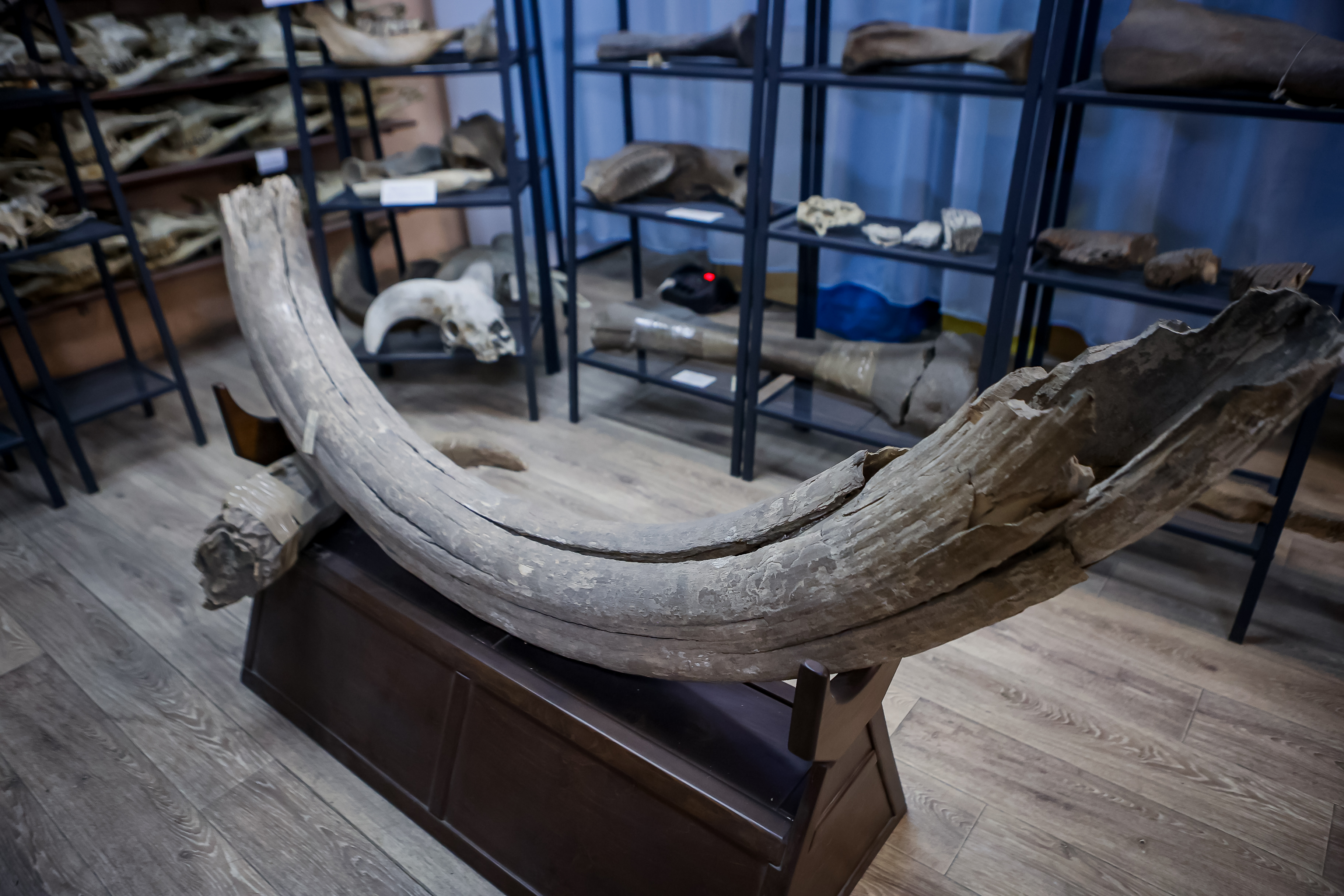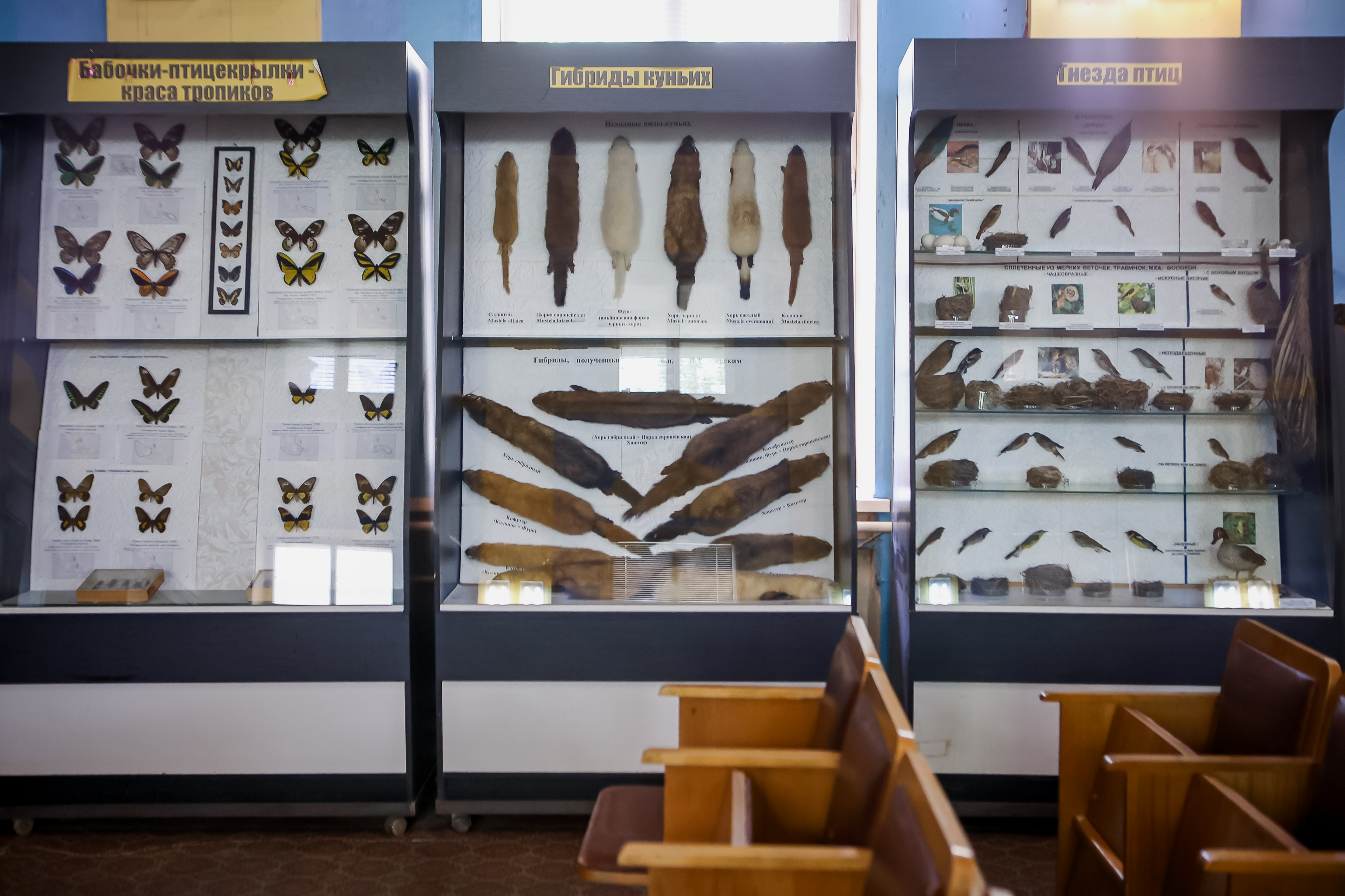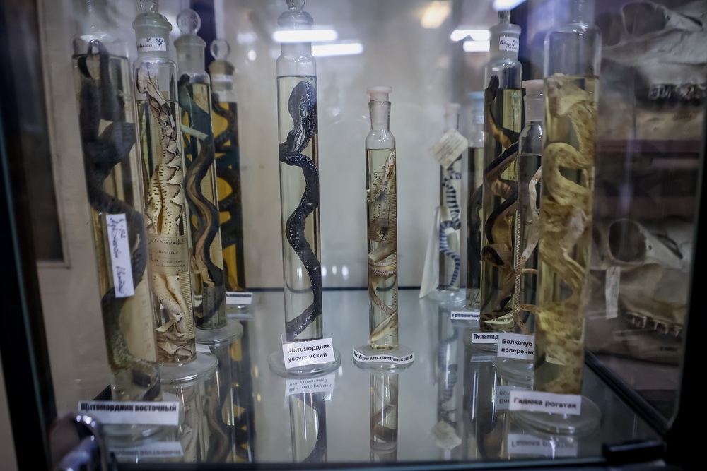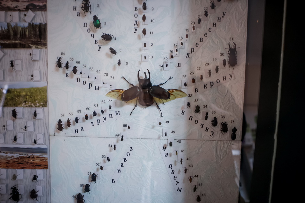В коридорах и в конференц-зале стоят витрины, оформленные как в музее. В них по группам распределены сотни экспонатов. Их показывают на экскурсиях и используют в научных исследованиях.