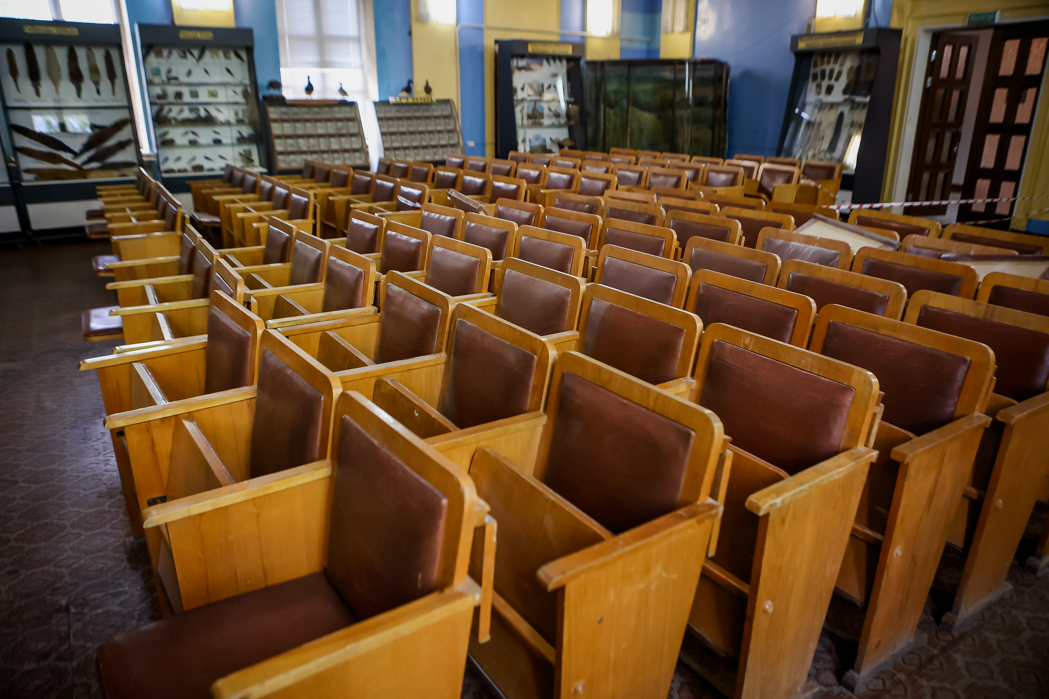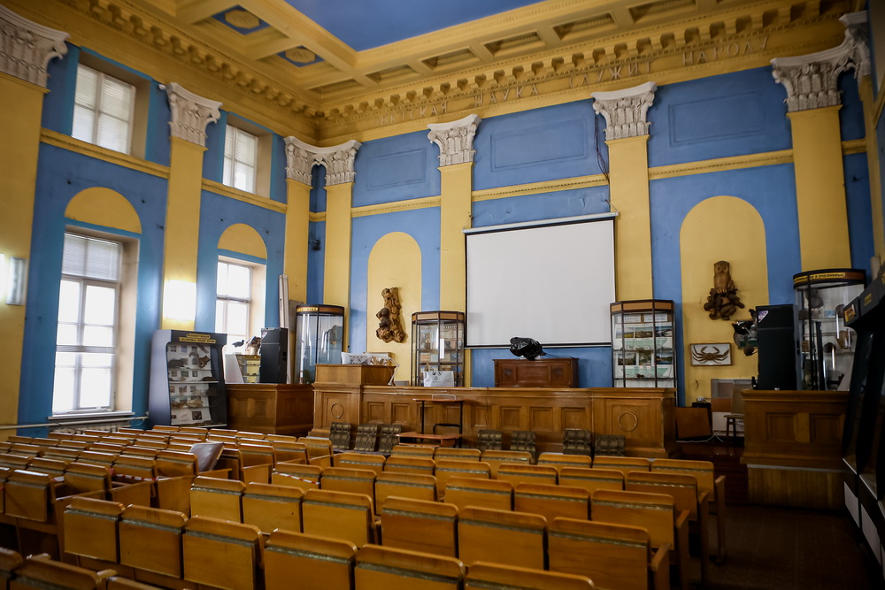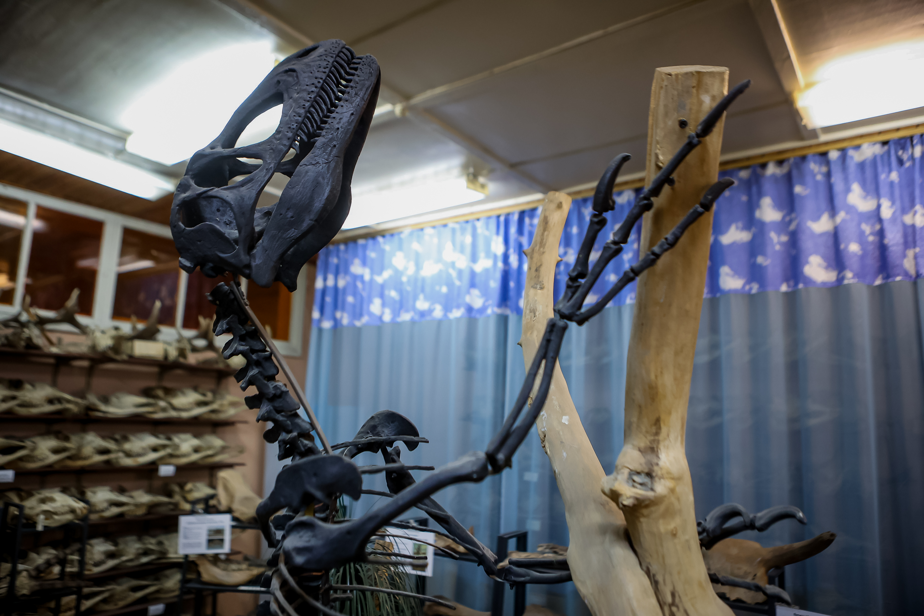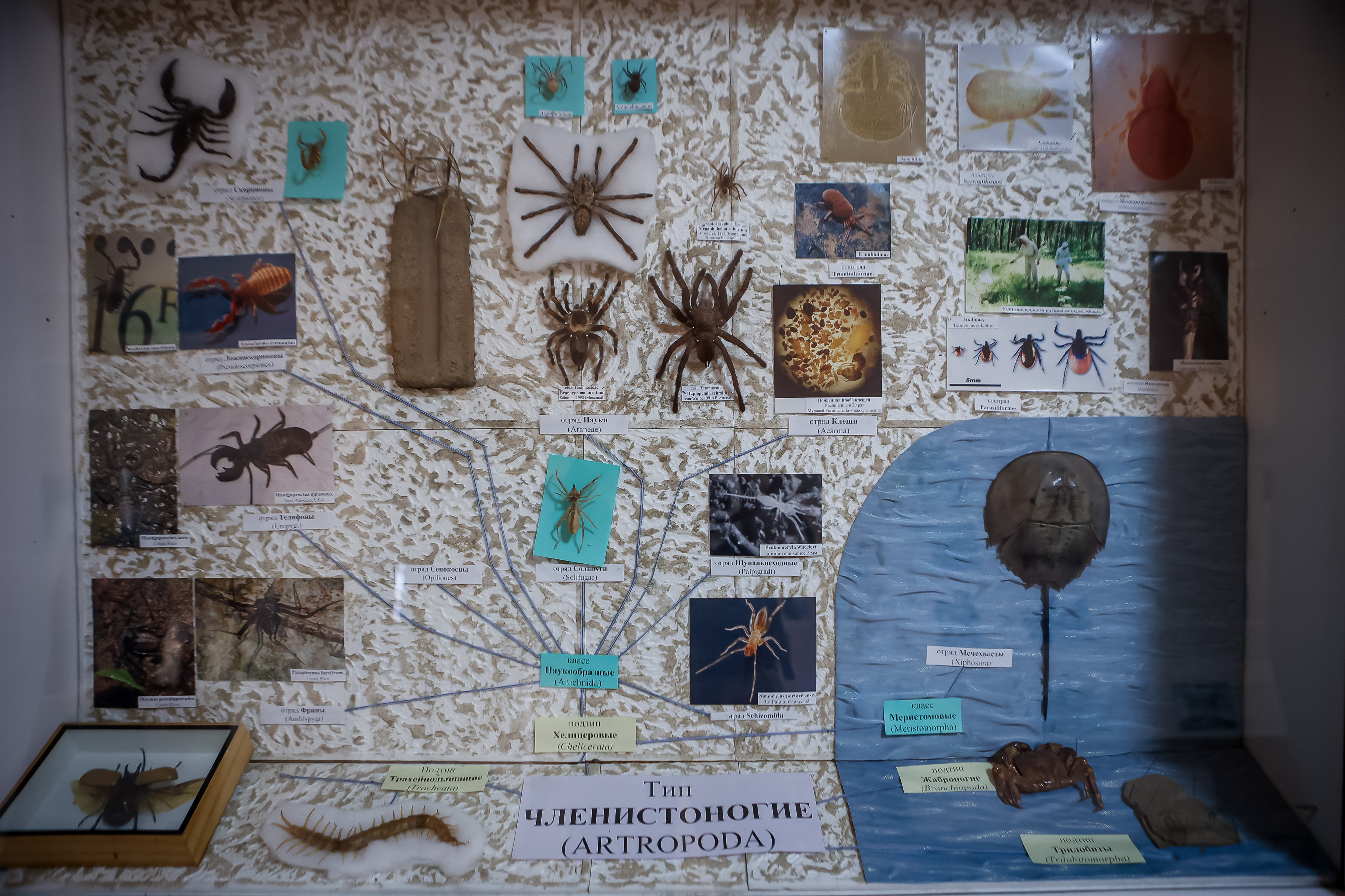 В коридорах и в конференц-зале стоят витрины, оформленные как в музее. В них по группам распределены сотни экспонатов. Их показывают на экскурсиях и используют в научных исследованиях.