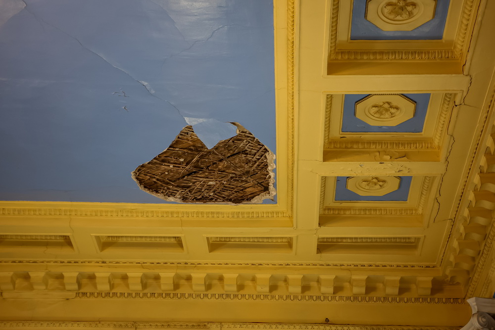 Сотрудники говорят, что уже никто толком не помнит, когда в этом невероятном помещении был ремонт, и надеются, что интерьер всё-таки обновят в ближайшее время, потому что из-за протекающей крыши потолок начал разрушаться, и находиться в зале стало небезопасно.