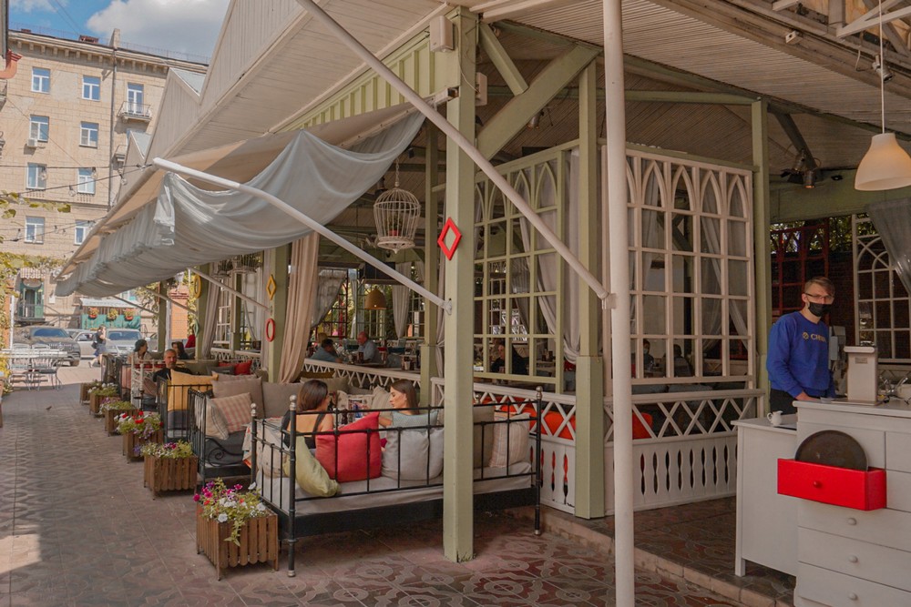 Летники и ресторанные дворики Новосибирска: фонарики, качели и вкусная еда