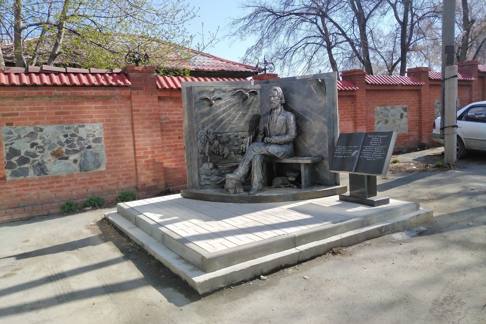 К слову, первый памятник этому литературному деятелю появился в 2009 году на аллее Красного проспекта возле её пересечения с улицей Гоголя. Скульптор — Александр Бортник. Бюст отлили из чугуна в Санкт-Петербурге.