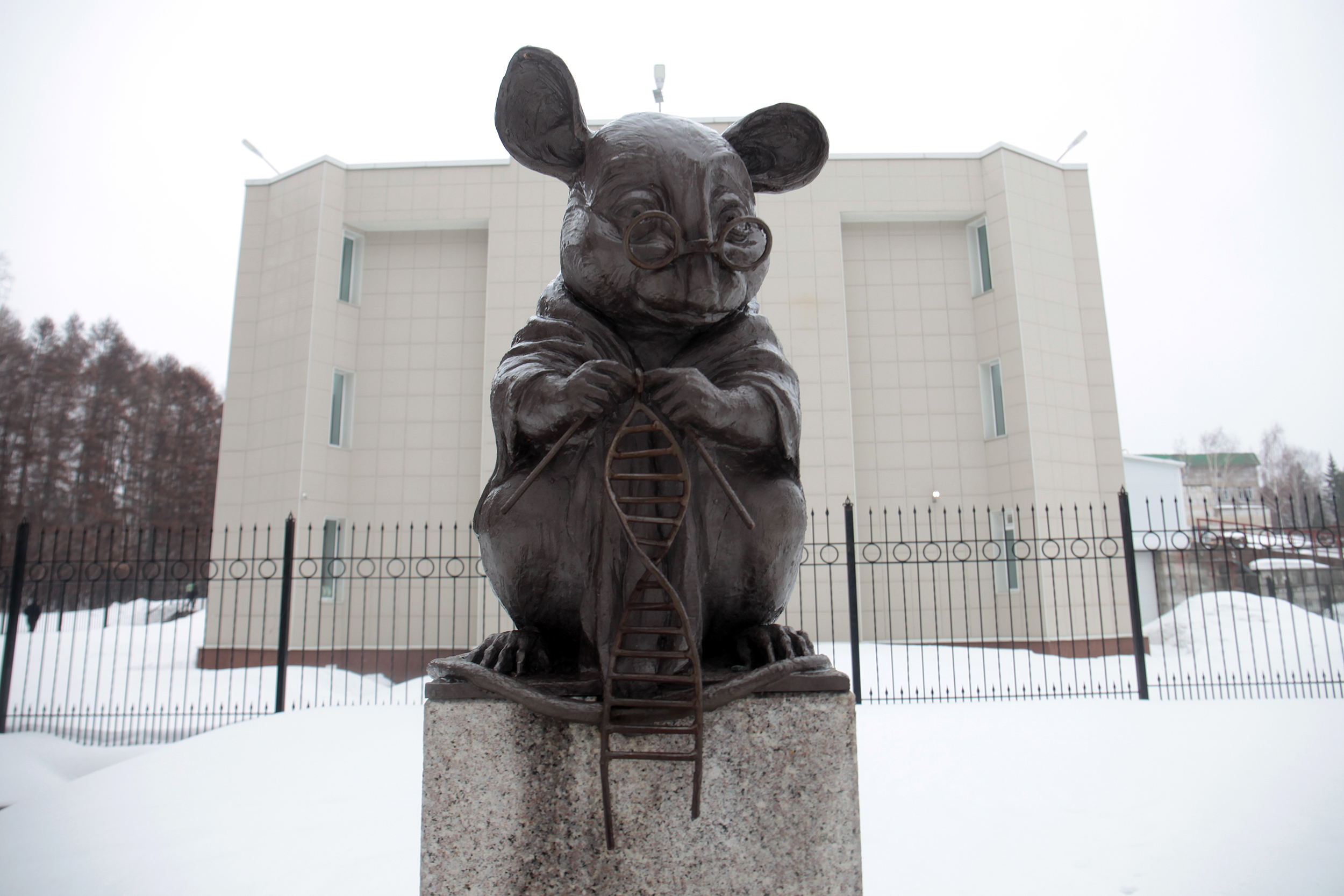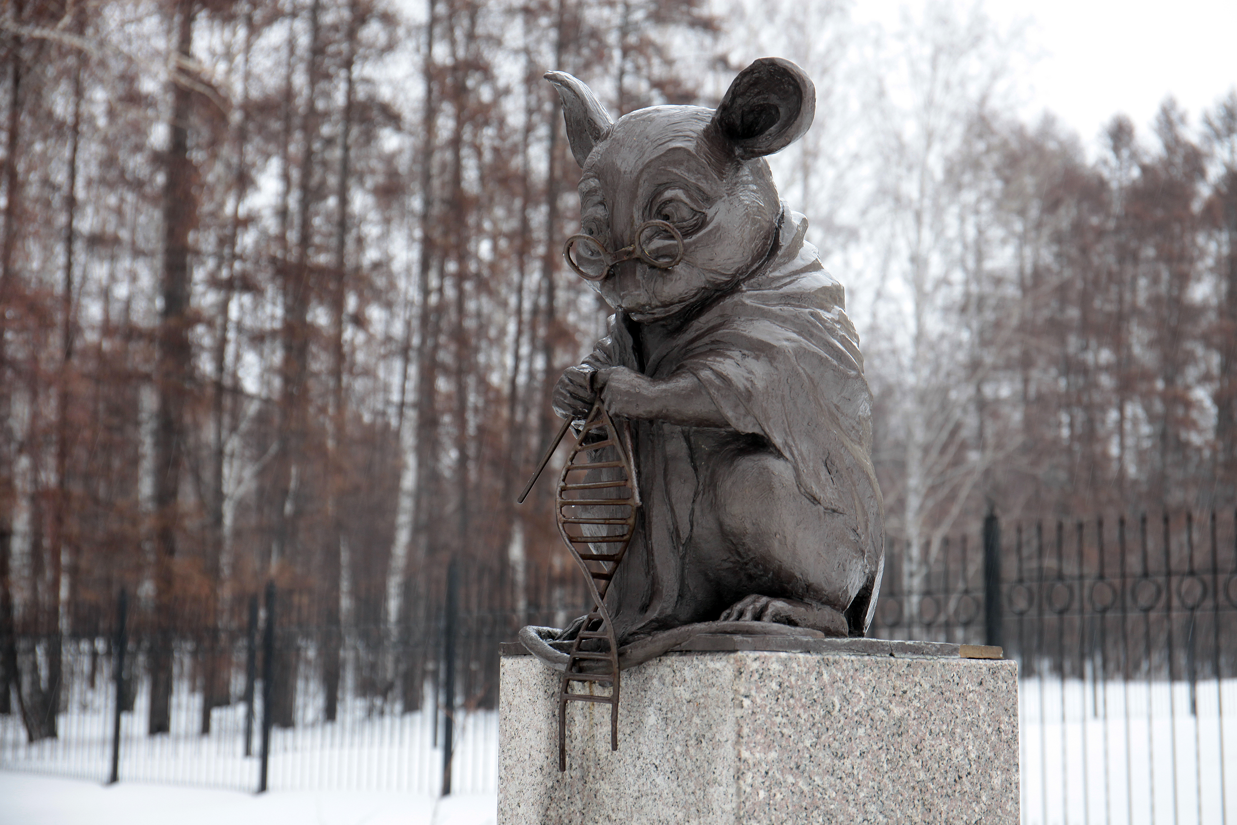 1 июля 2013 года в новосибирском Академгородке открыли первый в мире памятник лабораторной мыши. Она вяжет на спицах спираль ДНК. Высота фигурки — 70 сантиметров, всей композиции вместе с постаментом — 2,5 метра.