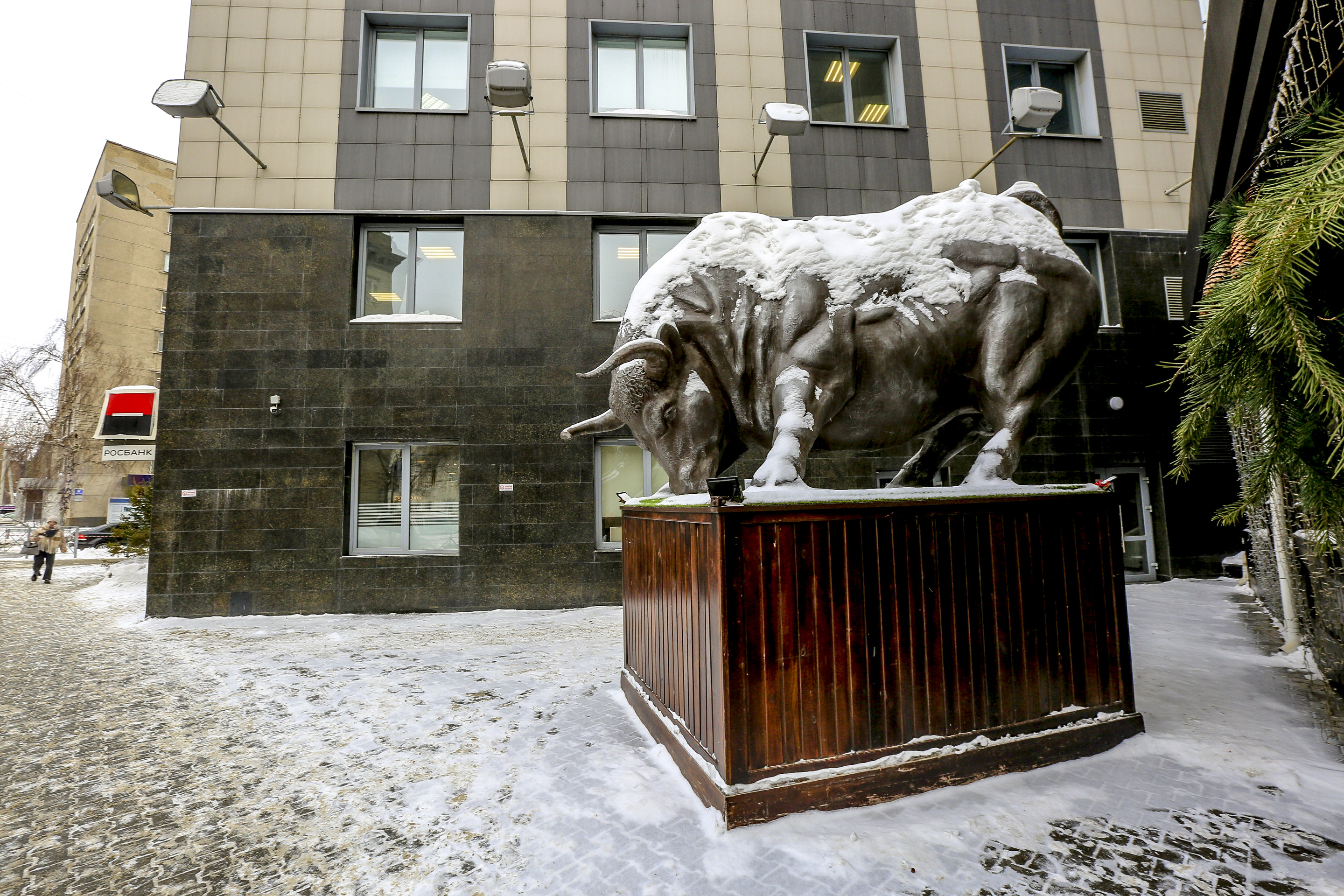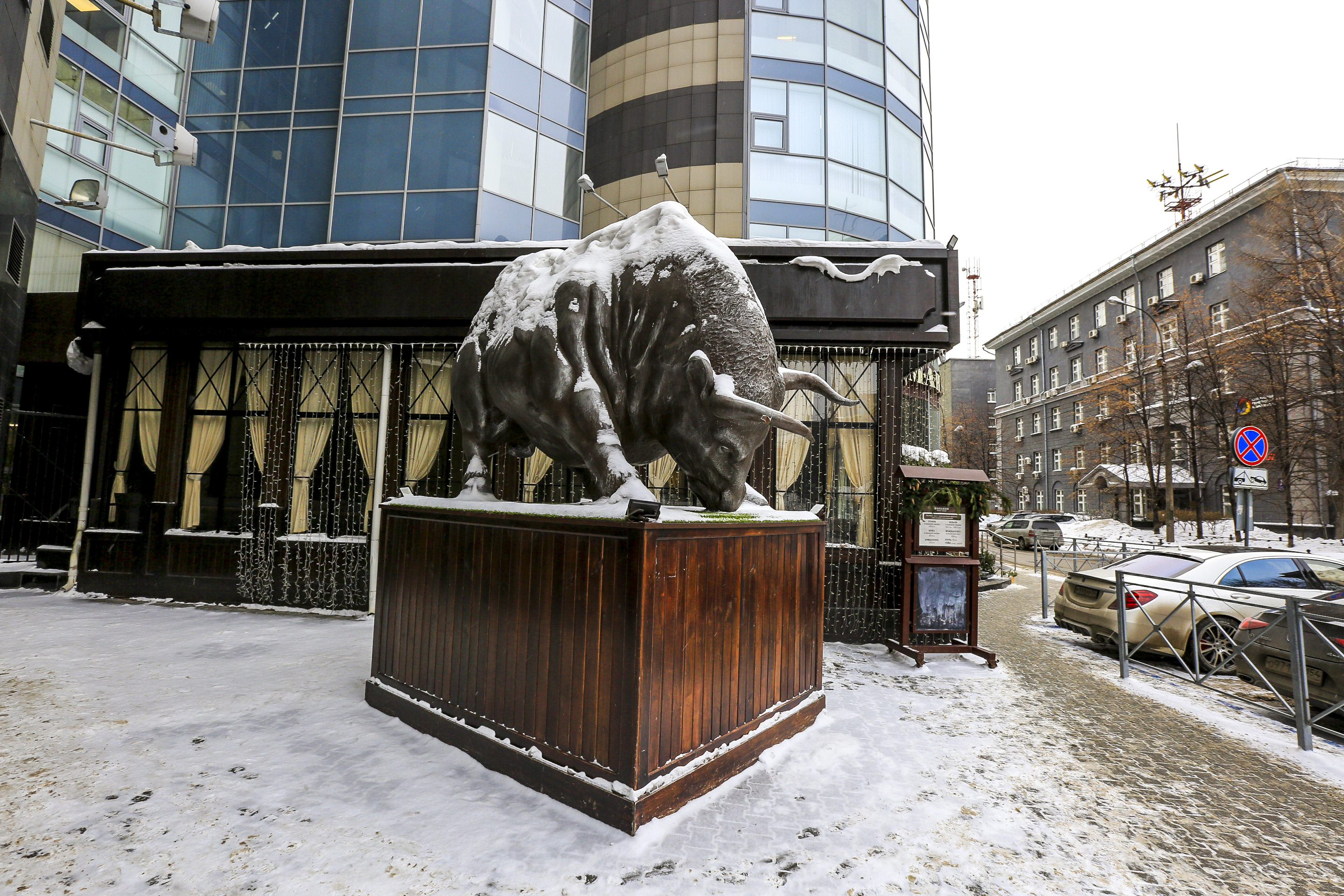 Двухтонная скульптура быка возвышается на постаменте рядом с БЦ «Кронос» (улица Советская, 5) у входа в ресторан «Гудман». Этот памятник появился в 2013 году. В администрации заведения уточнили, что композиция изготовлена не из бронзы и вообще не из металла, а просто выкрашена в золотой цвет. Скульптор ориентировался на тематику ресторана и на быков, установленных на Уолл-стрит в Нью-Йорке и на набережной Бунд в Шанхае.