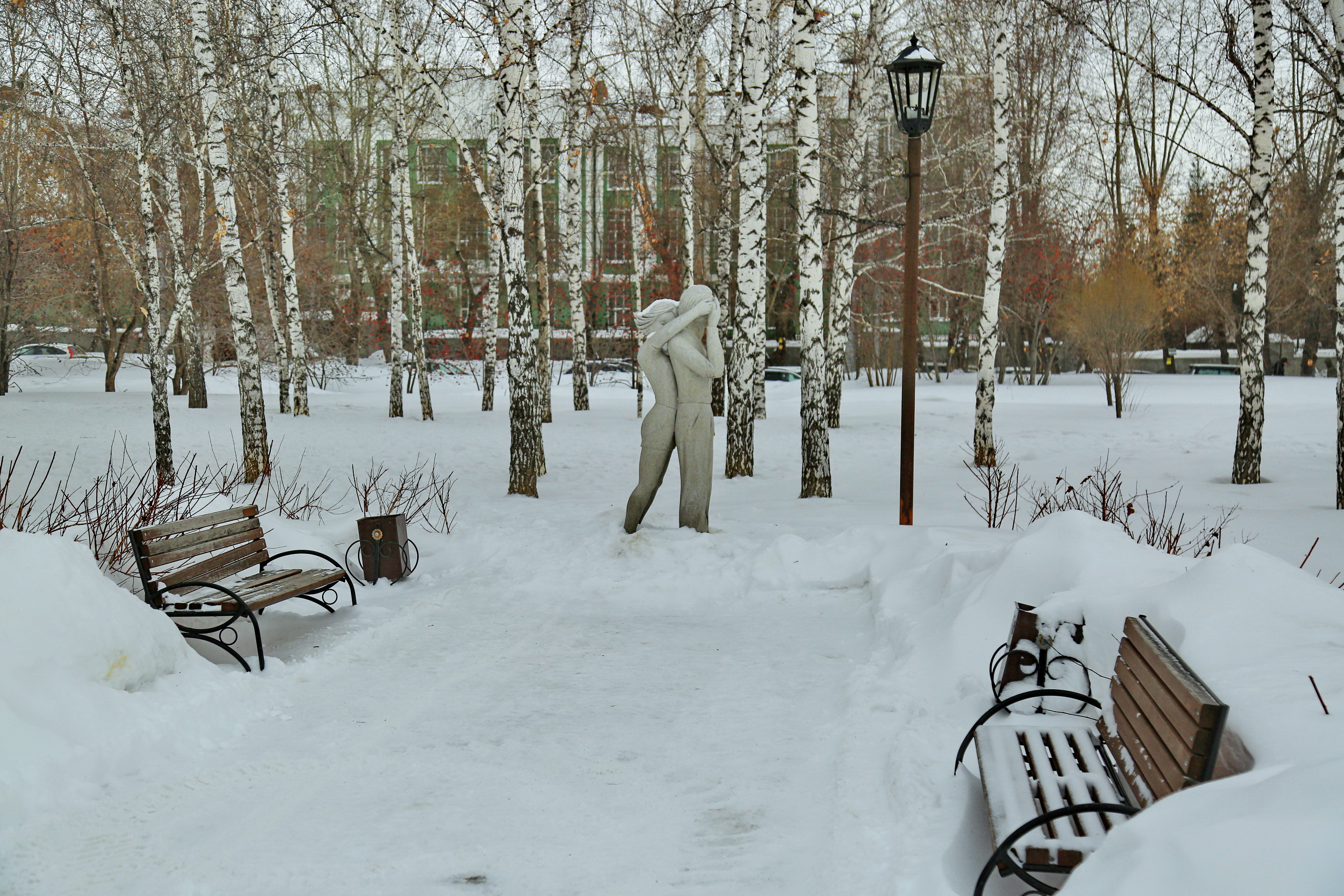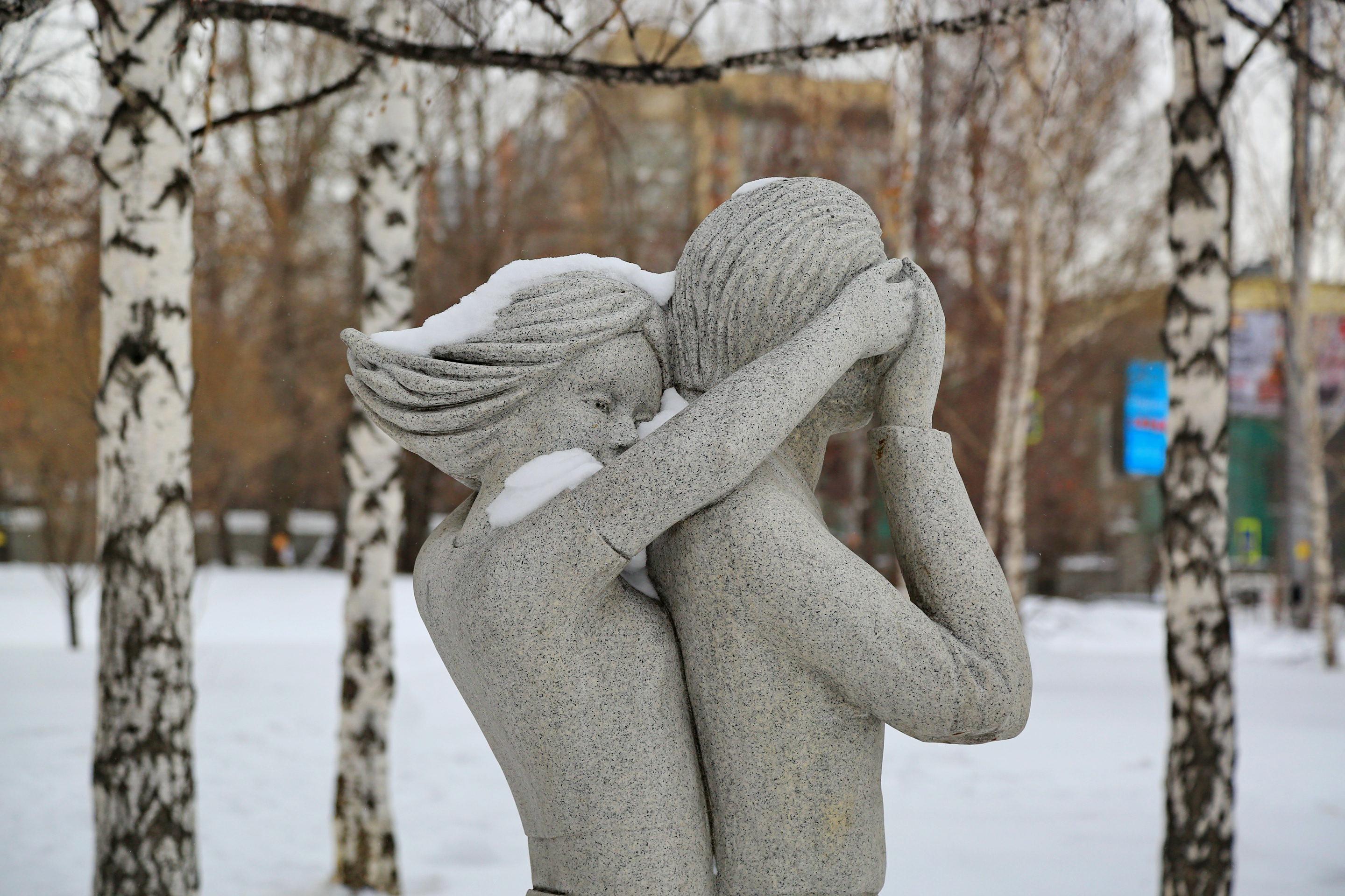 Старожилы говорят, что не зря памятник с таким сюжетом поставили в сквере рядом с ГПНТБ. Здесь, перед библиотекой, традиционно назначают встречи влюблённые.