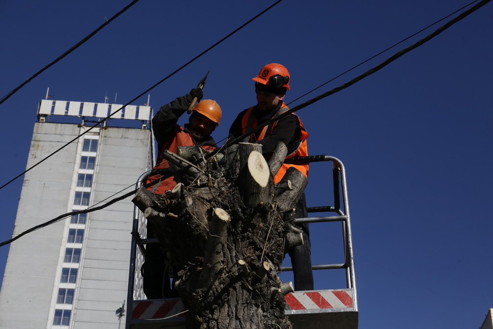 Работать приходится особенно аккуратно, чтобы дерево не задело провода и не упало на дорогу. Растения, которые заменят срубленные тополя, хорошо переносят воздействие выхлопных газов и реагентов для уборки улиц.