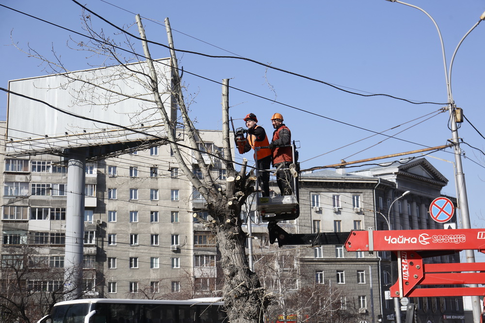 На Вокзальной магистрали в Новосибирске начали спиливать деревья. В ближайшие дни уберут три десятка аварийных тополей и берёз вдоль проезжей части. Вместо них высадят молодые липы и кизильник.