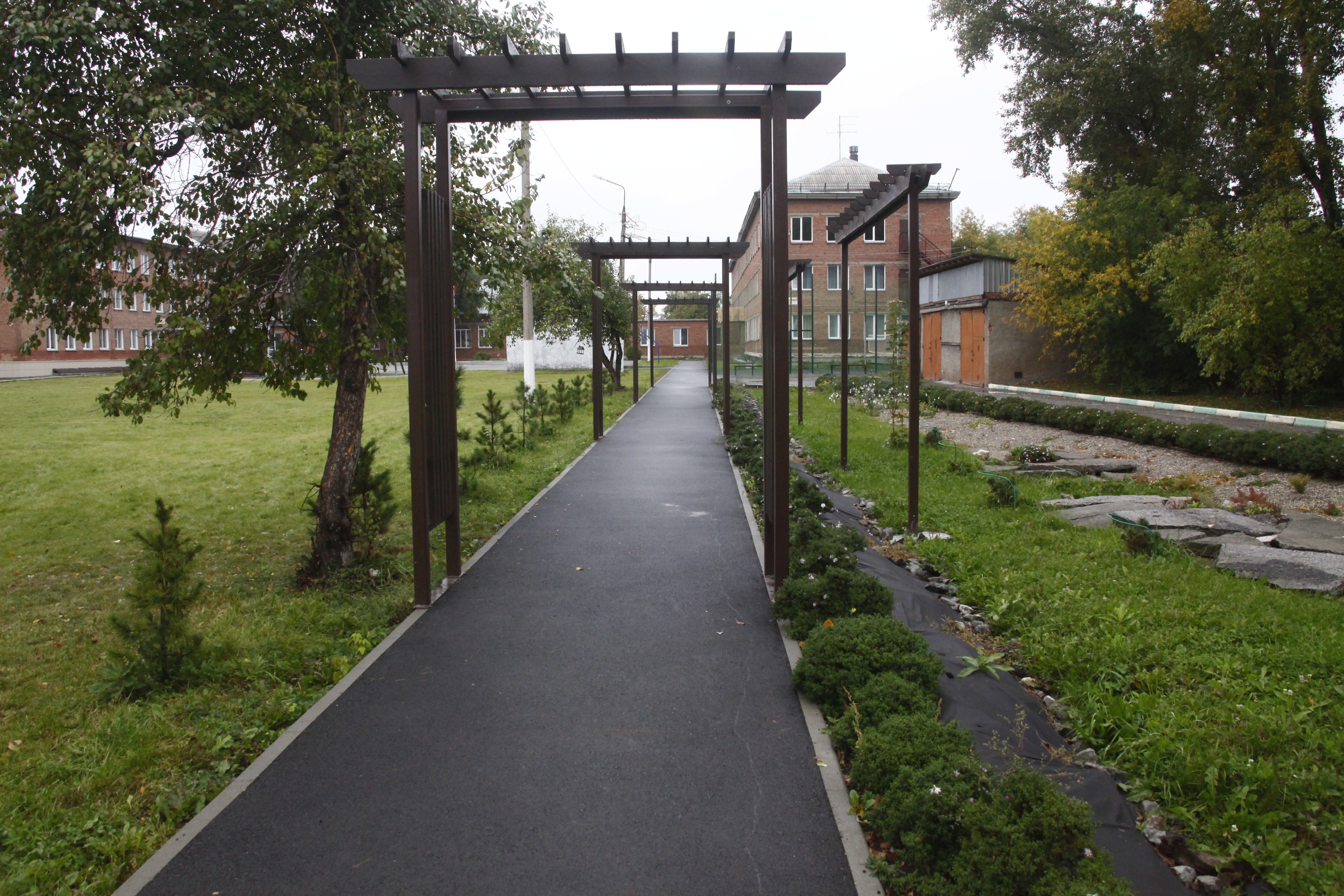 «Мы развиваем нашу территорию. У нас есть план ландшафтного дизайна. В этом году обустроили спортивную площадку для волейбола и бадминтона, игровую площадку для младших детей. Тополя постепенно заменяем хвойными растениями. Несколько лет назад вдоль тёплого перехода высадили ряд кедров. Центральную премьер-аллею оборудовали перголами. На них появятся подсветка и вьющиеся растения. Рядом высадим розы, цветы в подвесных горшках», — рассказал Альберт Ханаев.