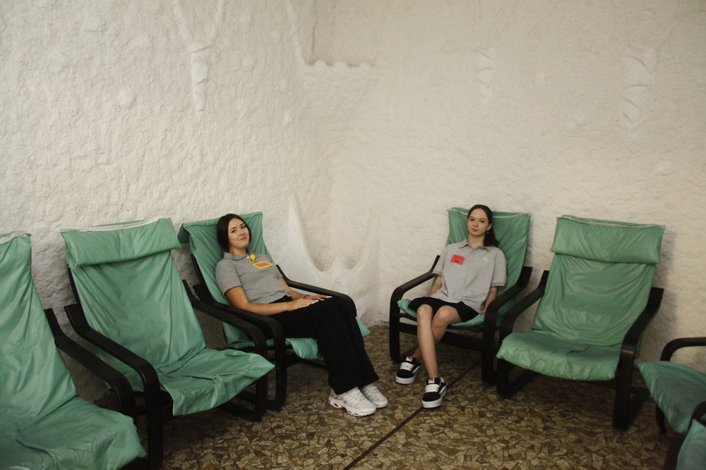 Расслабиться и улучшить настроение помогает специально оборудованная зона электросна. Она представляет собой два затемнённых кабинета, где можно спать на кушетке в шлеме с датчиками. По соседству расположена соляная пещера с музыкой и подсветкой.