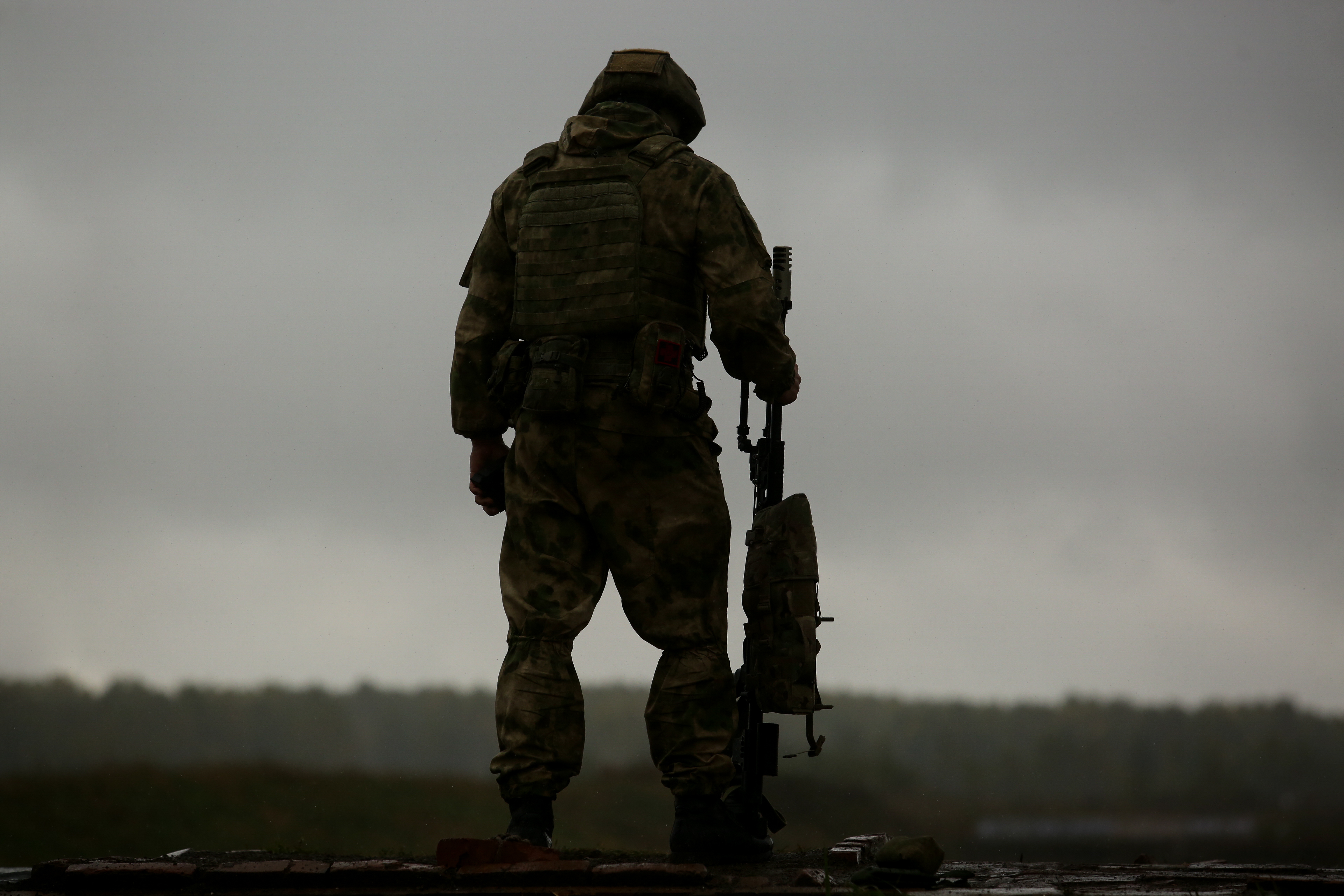 Или фото человека в камуфляже с винтовкой. Казалось бы, он просто стоит спиной к нам, но, когда смотришь на него, как будто перехватываешь его настроение. Так и хочется крикнуть ему: «Лейтенант, о чём задумался? Давай, не промахнись!»