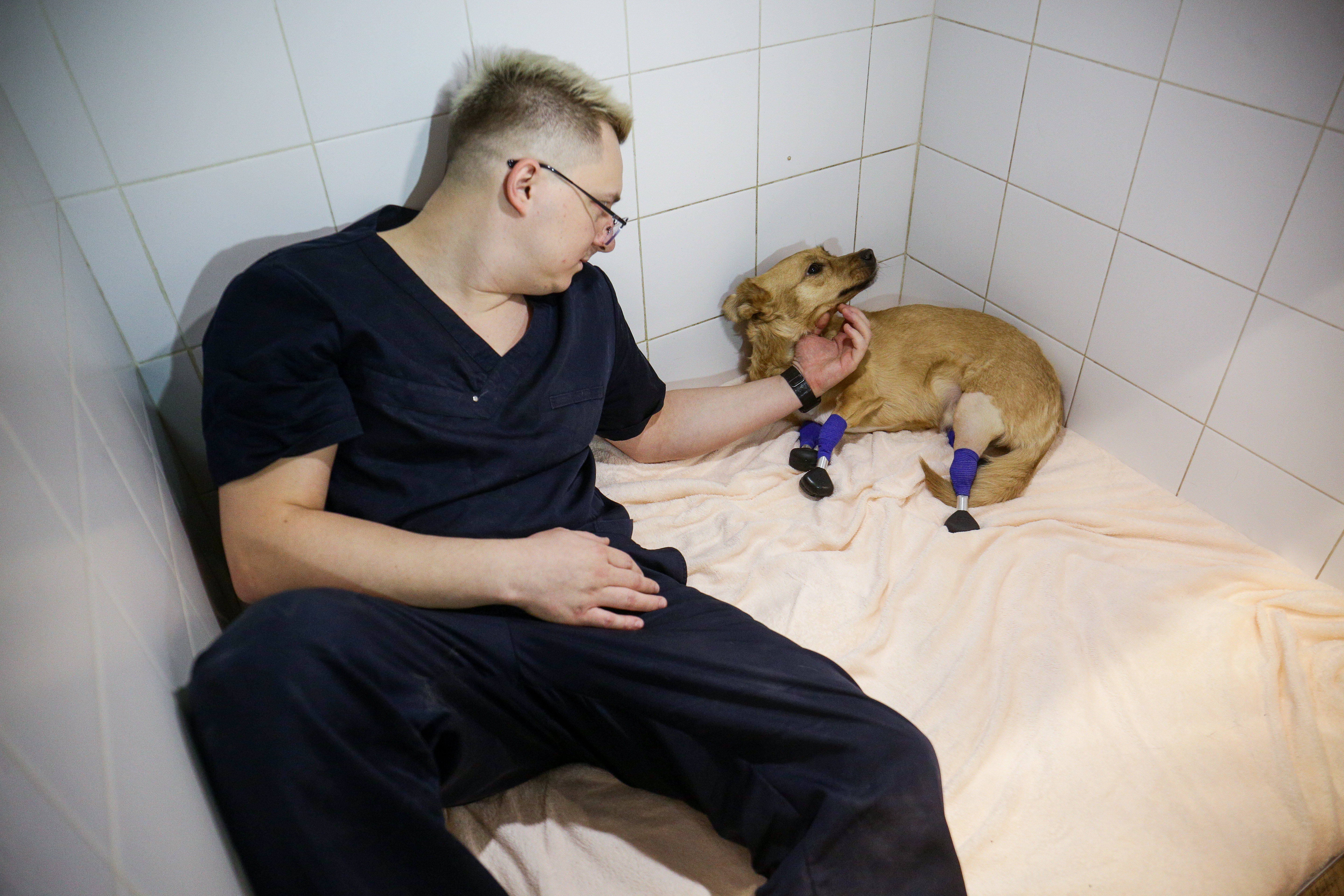 Порой один кадр может рассказать целую историю. Помните «айсберг Хемингуэя» — проникновенные рассказы из шести слов, способные растрогать любого? «Извини, солдат, мы продаём ботинки парами». Так и фото с собачкой Моникой, которая сидит в углу, а с ней рядом — хирург Сергей Горшков, вжививший ей в лапы сразу четыре протеза. В одном кадре — и целая жизнь маленькой собаки, и любовь человека к делу всей своей жизни.