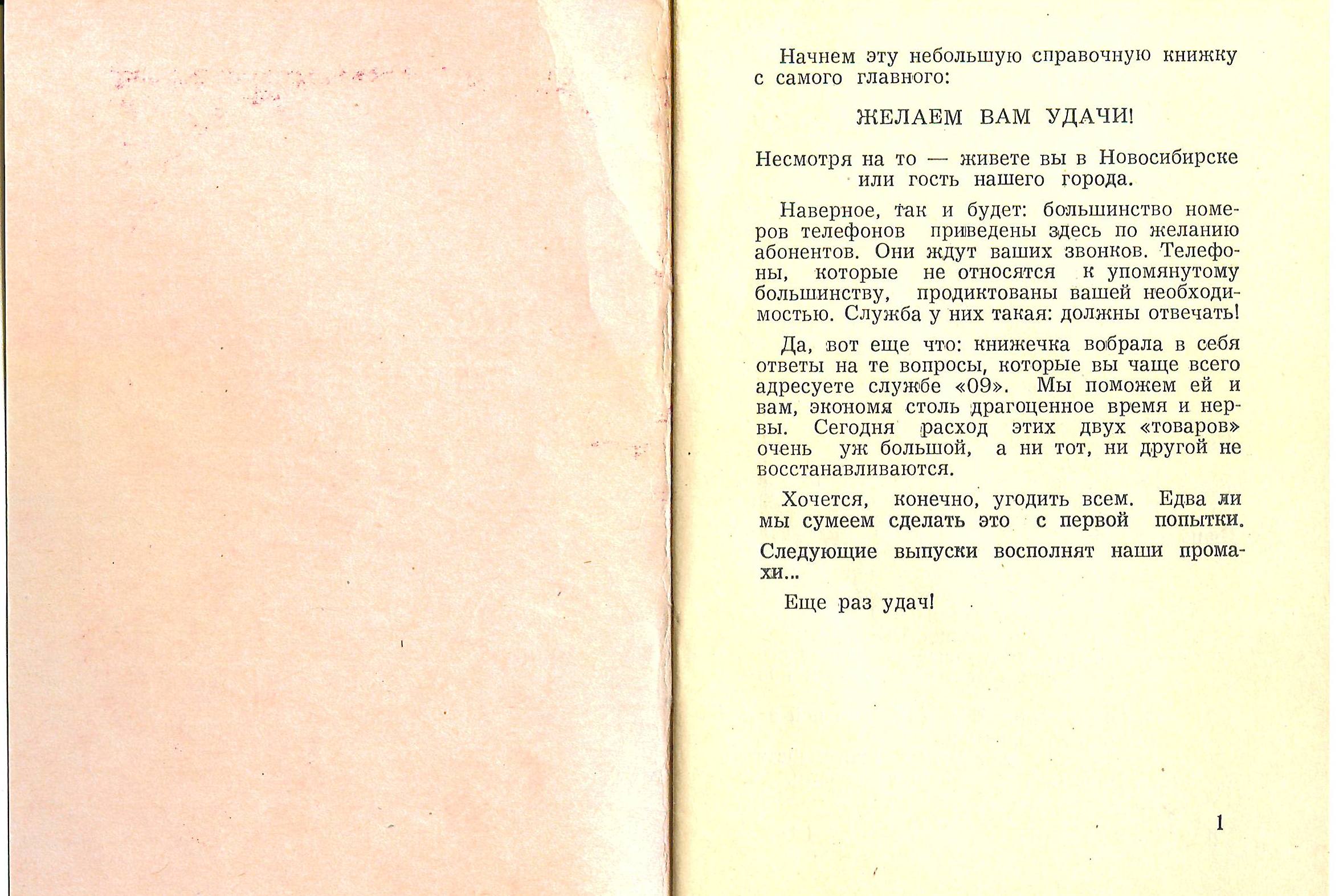 В приветственном блоке составители справочника объясняют, зачем нужно такое издание. Они уверены, что книжечка сможет легко и просто заменить службу справки «09», поскольку содержит ответы на все вопросы, которые чаще всего приезжие и горожане задавали по этому телефону. Тогда же ещё не было интернета с ДубльГИС и Яндекс. Картами. Составители обещают пользователям справочника помочь сэкономить время и нервы — ведь ни то, ни другое не восстанавливается.
