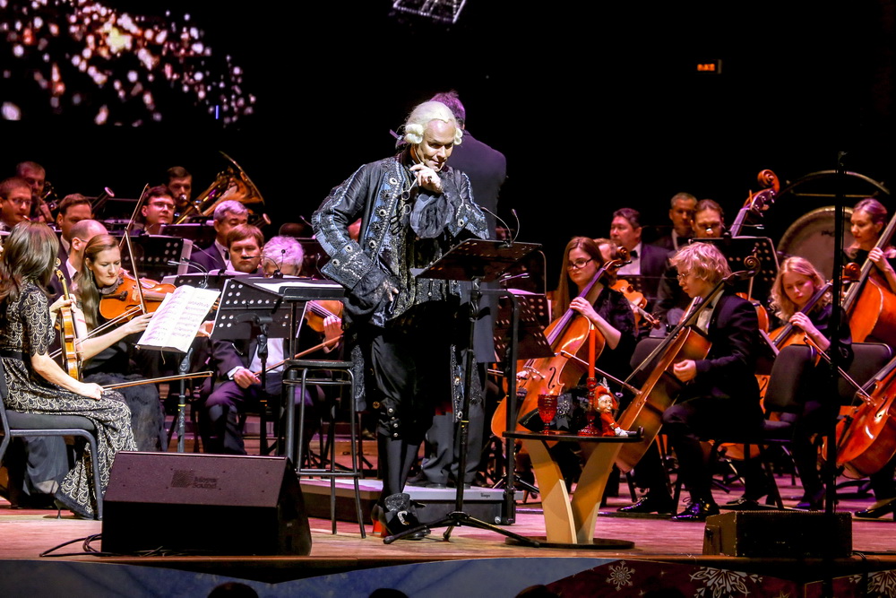 «Я сочинил сказку, потому что у меня была мечта: с оркестром, с потрясающей музыкой выходить к людям — такой свой корпоратив сделать. И в Новый год я всегда отдыхаю, потому что люблю этот праздник — очень! И я вот придумал такую историю. И с 2018 года езжу с этой историей. У меня уникальная возможность работать с разными оркестрами, понимаете, каждый оркестр по-своему играет», — объяснил актёр Максим Аверин.