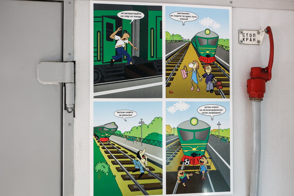 Кстати, дежурный по станции «Спортивной» не просто так стоит на перроне, а регулярно машет рукой проезжающим мимо поездам. Маленьким путешественникам это очень нравится.