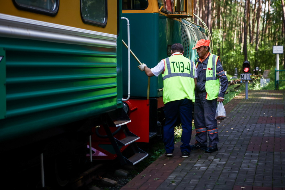 Летом ребята со всей области приезжают в Новосибирск проходить практику на маленькой, но самой настоящей железной дороге. Когда мы снимали фоторепортаж, то познакомились с курсантами из Барабинска. Они пробовали себя в профессии проводника: проверяли билеты у пассажиров и объявляли остановки.