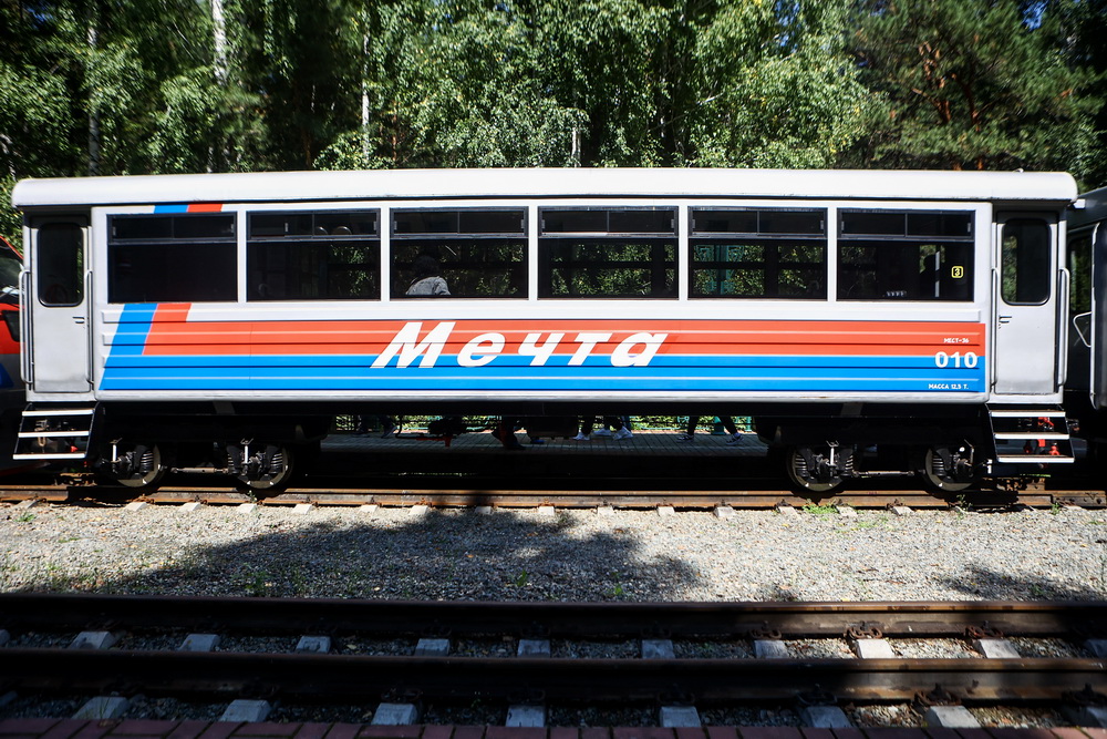 Всего на дороге 12 пассажирских вагонов и открытый пассажирский вагон-платформа собственной разработки. Поезда имеют названия «Сказка», «Юность», «Сибиряк» и «Мечта».