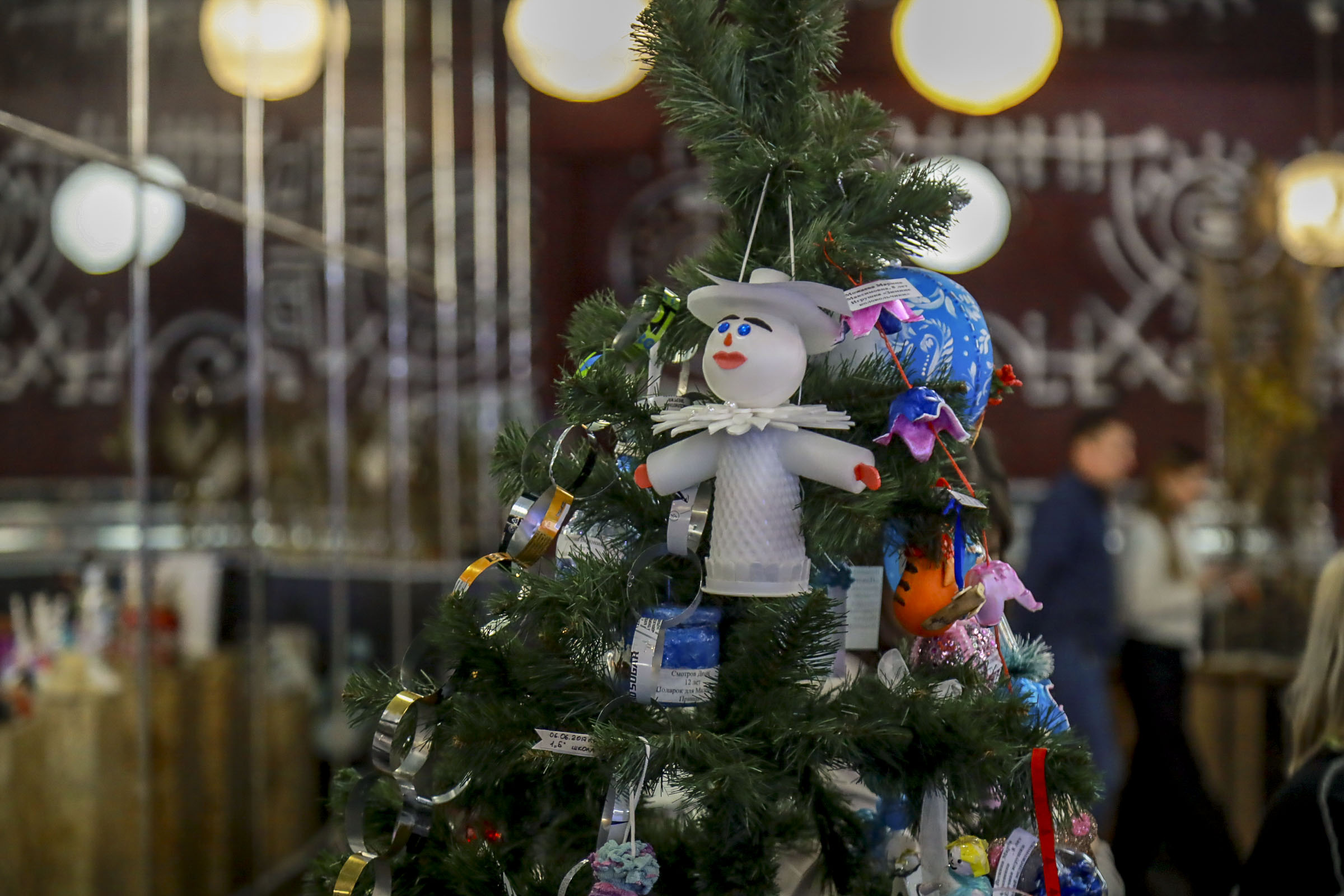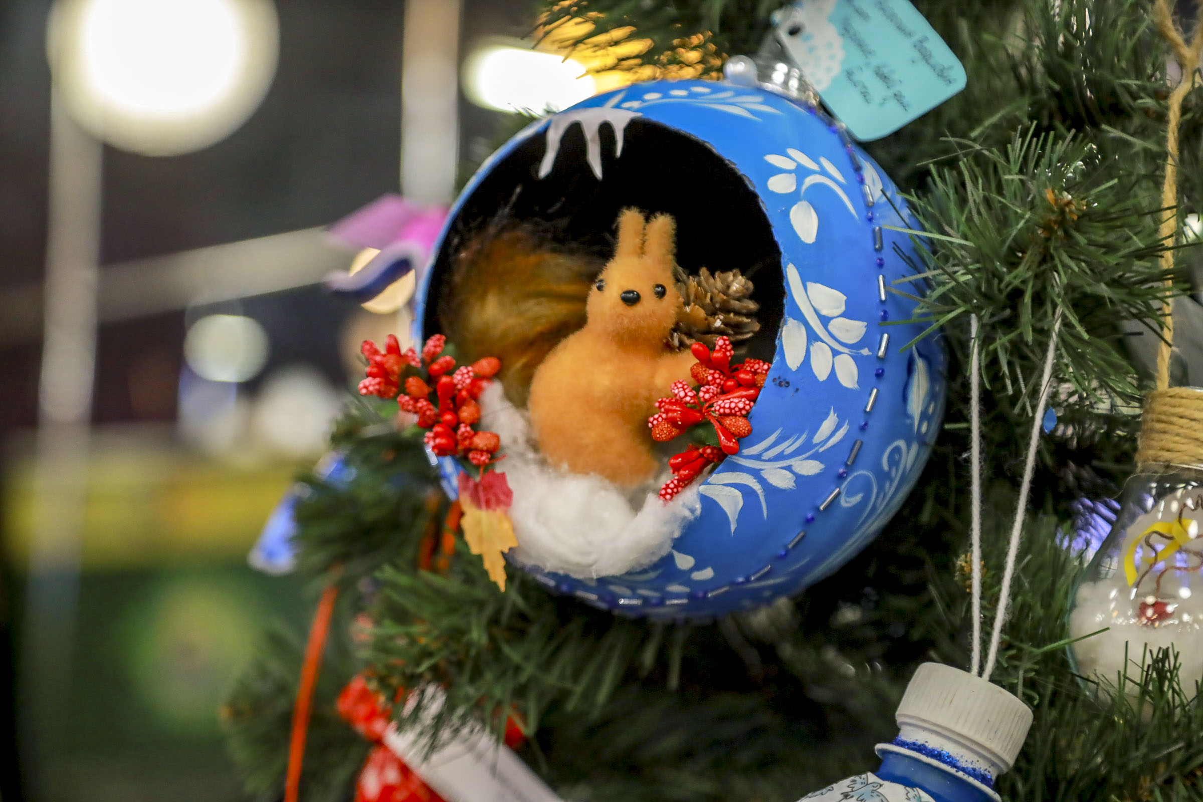 Авторам лучших игрушек из вторсырья в Новосибирске вручили призы. Сейчас работы украшают новогоднюю ёлку в ДК «Прогресс». Здесь есть снеговик из пенопласта, ракета из фольги и бутылок, Маленький принц на шаре из крышечек и другие самобытные украшения.