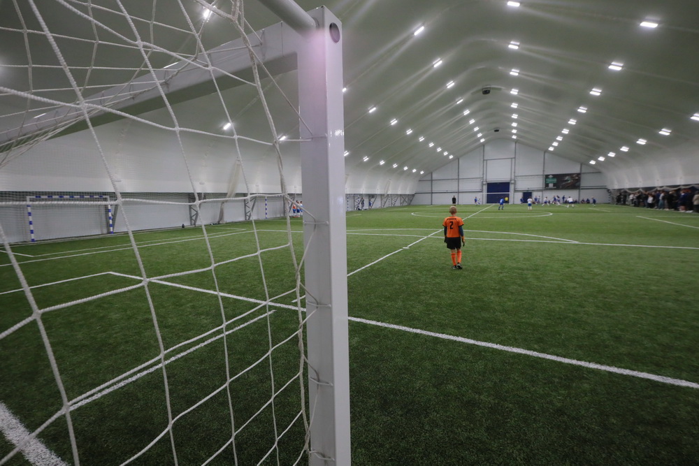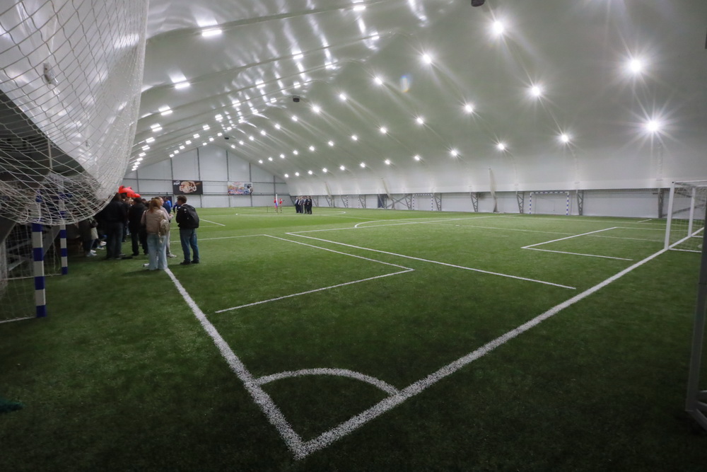 Арену построил частный инвестор, её площадь — 2,5 тысячи кв. метров. Здесь оборудовали четыре футбольных поля, которые можно объединить в одно.