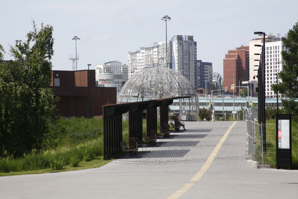 Благоустраивать берег Оби возле «Сибирь-Арены» начали в 2021 году. Парк занял более 18 гектаров. На территории сохранили природный ландшафт, обновили зелёные насаждения, высадив более 19 000 многолетних цветов, деревьев и кустарников. Появились пешеходные и велодорожки, игровые локации для детей, зона для баскетбола и волейбола с местами для зрителей, самый большой за Уралом скейт-парк и памп-трек.