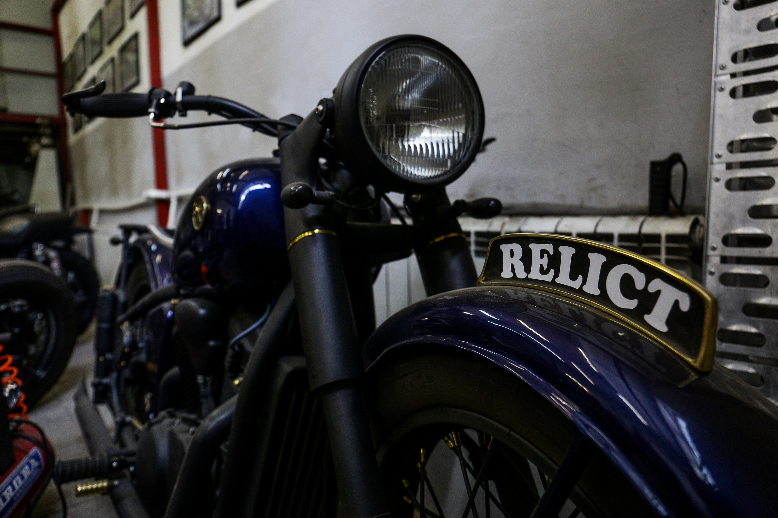 Стоящий рядом синий мотоцикл аналогичен чёрному, но у него другая подвеска. Сменилось и назначение байка — из ретро он стал более приспособленным для езды по пересечённой местности. На нём можно спокойно отправляться в лес.