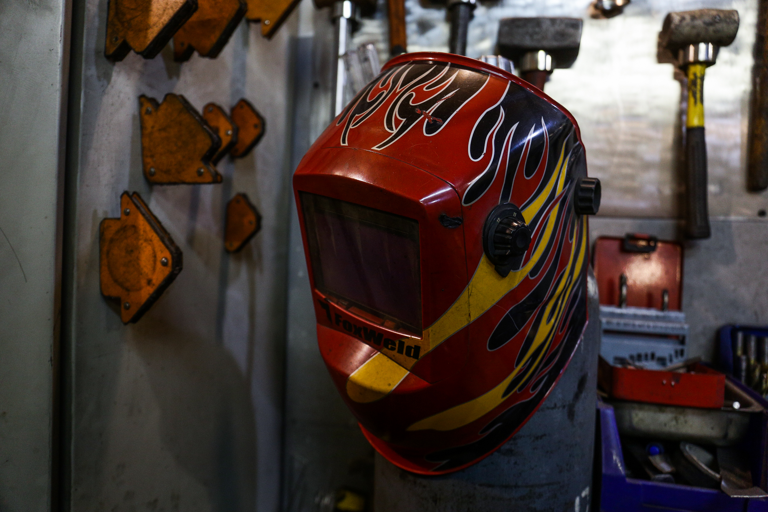 Перед тем как приступить к работе с металлом, мастер надевает защитную амуницию, специальные ботинки, фартук из кожи, респиратор, очки и наушники. «Когда во все стороны летят искры и всё кипит, моё состояние очень схоже с трансом», — признаётся Роман. На эти процессы уходит очень много энергии, и на следующий день надо переключиться, чтобы её восполнить. К металлу лучше не подходить, а заняться механикой и сборкой.