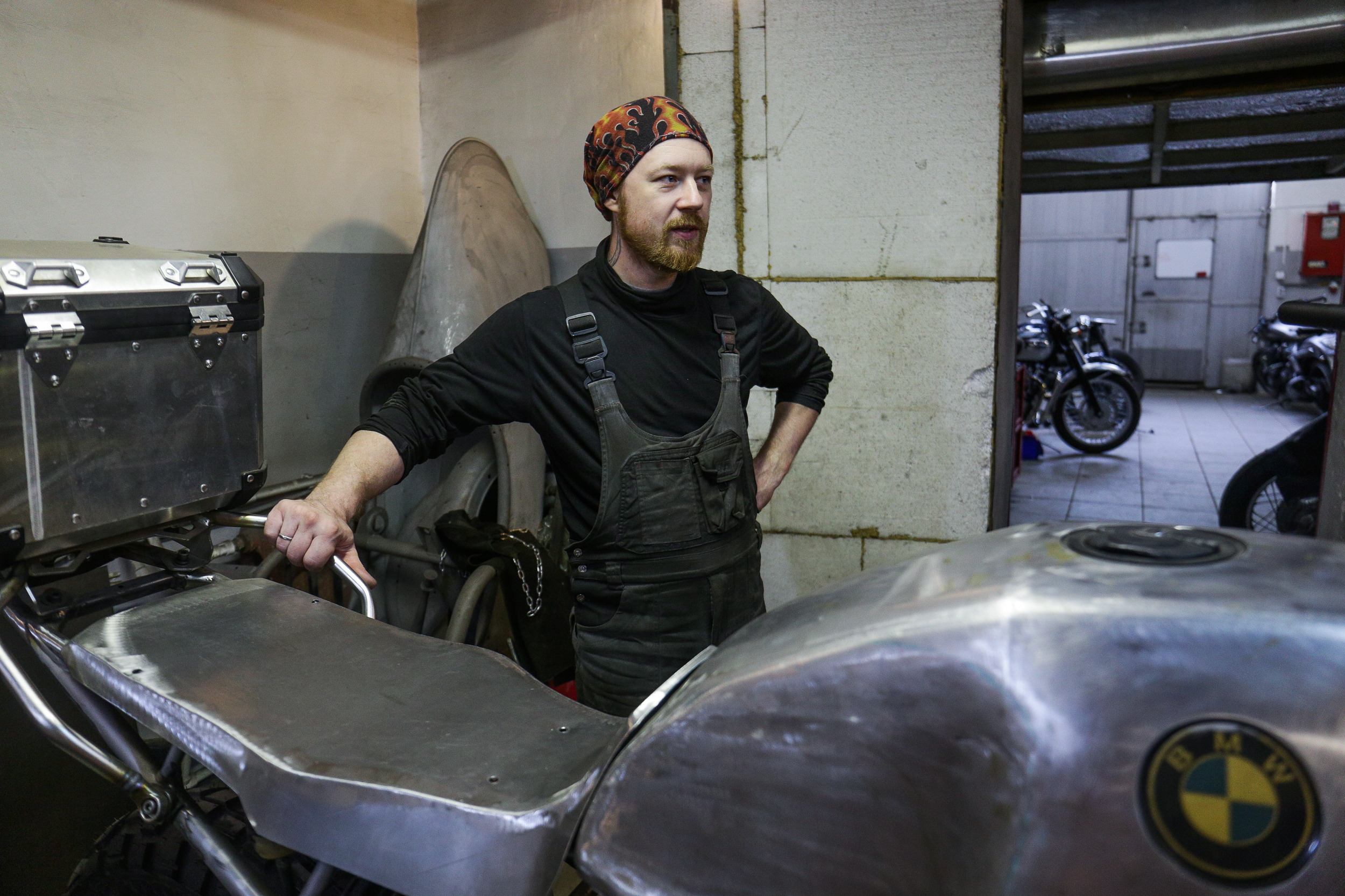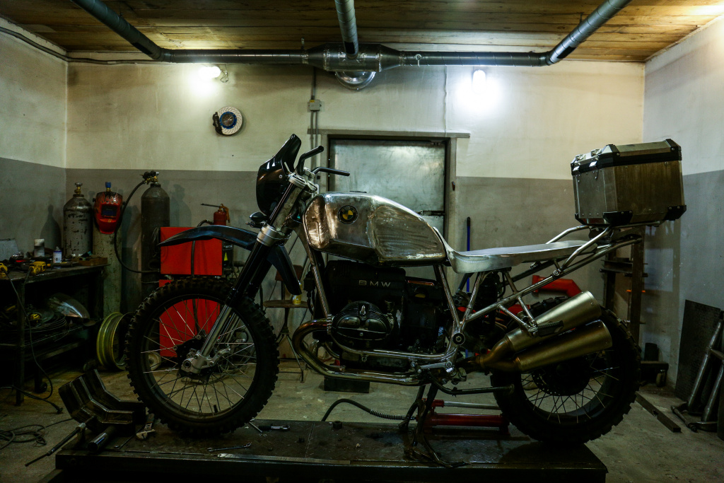 Идёт процесс восстановления мотоцикла BMW 80-х годов. Такие участвовали в гонках «Париж — Дакар». Это ветеран со старым мотором и отличной подвеской, у которого нет никакой электроники. На воссозданном транспорте можно будет поехать в кругосветку и не бояться, что если он сломается где-нибудь в Монголии, то его там, на месте, не отремонтируешь. По оценкам мастера, бюджет кастомайзинга в итоге превысит 2 млн рублей. «Но за эти деньги вы не купите новый мотоцикл соответствующего класса», — говорит Роман.
