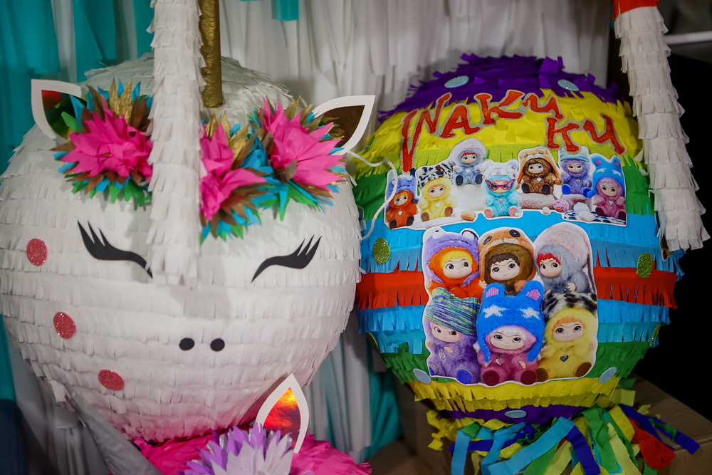 Этот элемент праздника пришёл к нам из Мексики и набирает популярность. Пиньята — полая игрушка из картона или папье-маше. Её начиняют конфетами, маленькими сюрпризами или конфетти, а во время торжества разбивают палками, чтобы получить угощение.