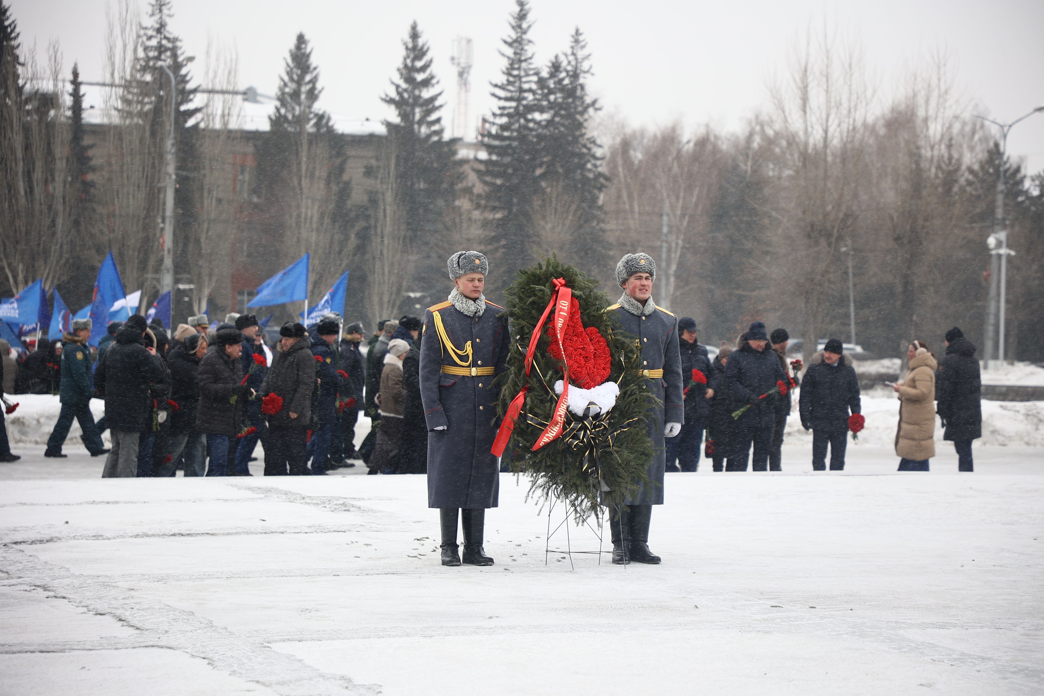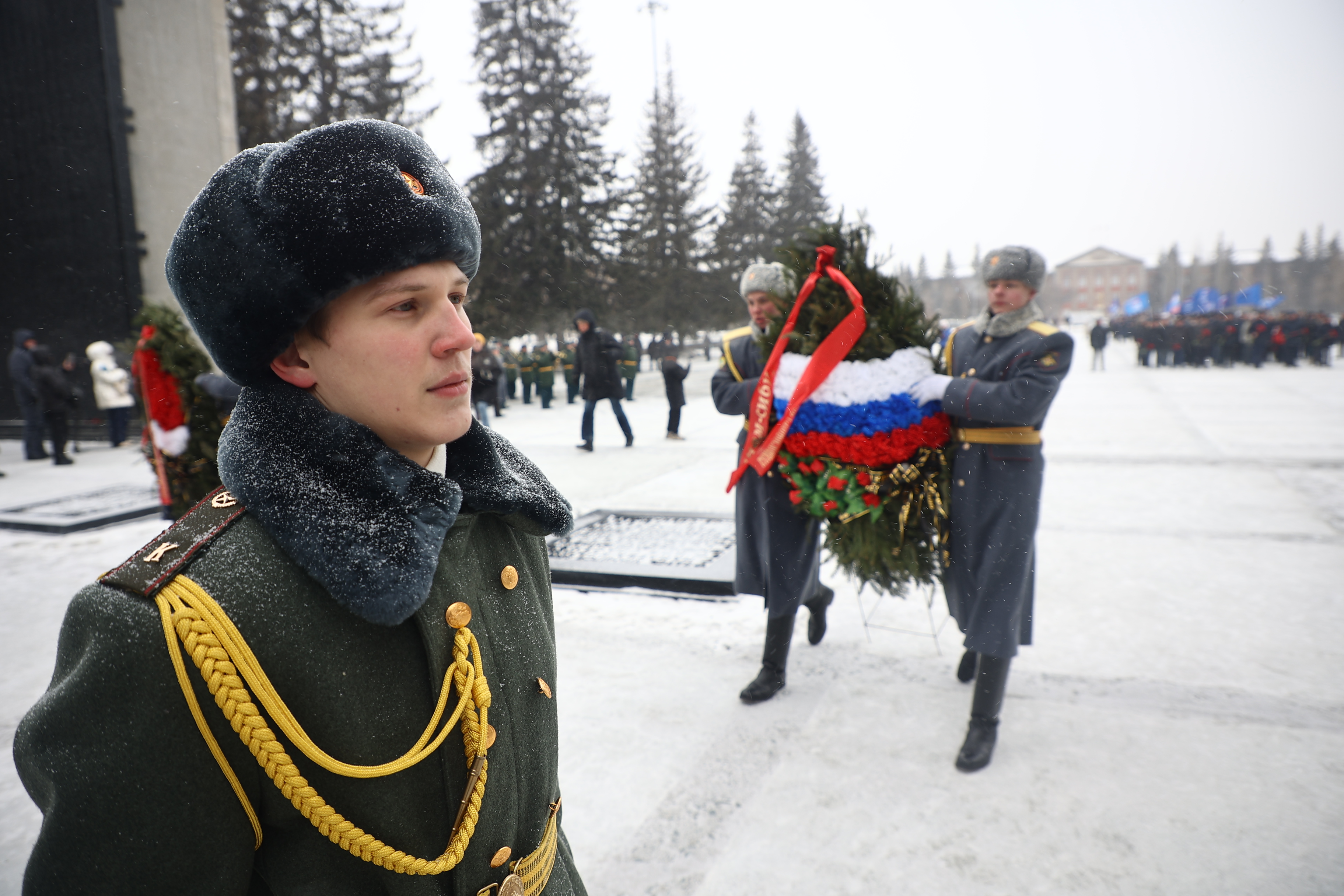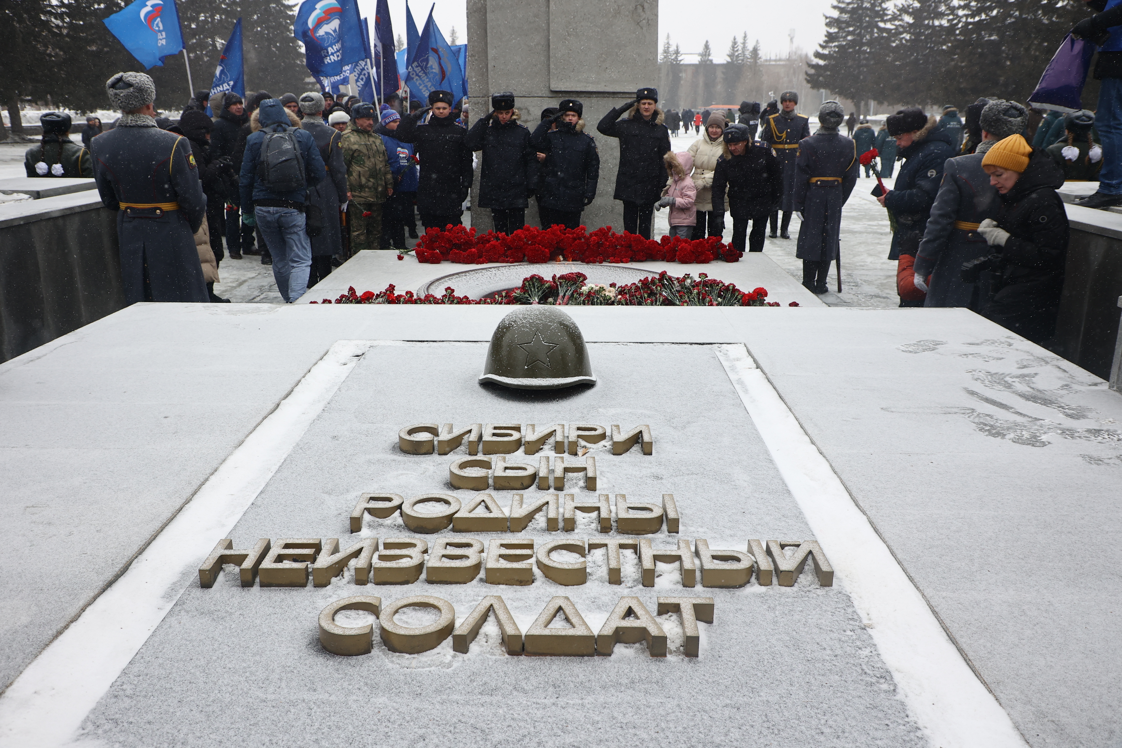 В торжественном мероприятии, посвящённом Дню защитника Отечества, приняли участие ветераны, депутаты и представители общественных организаций, воспитанники патриотических клубов, жители Новосибирска.