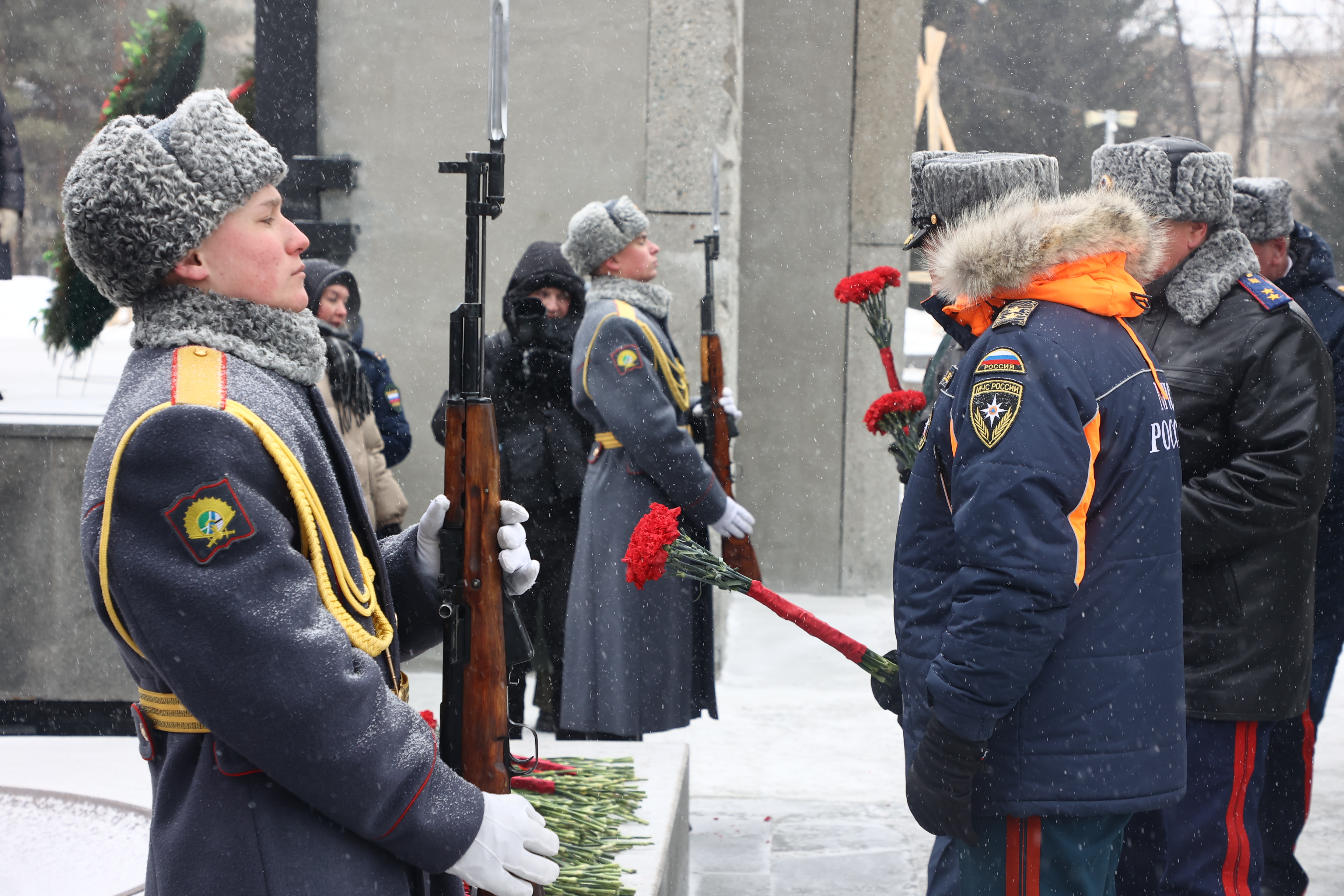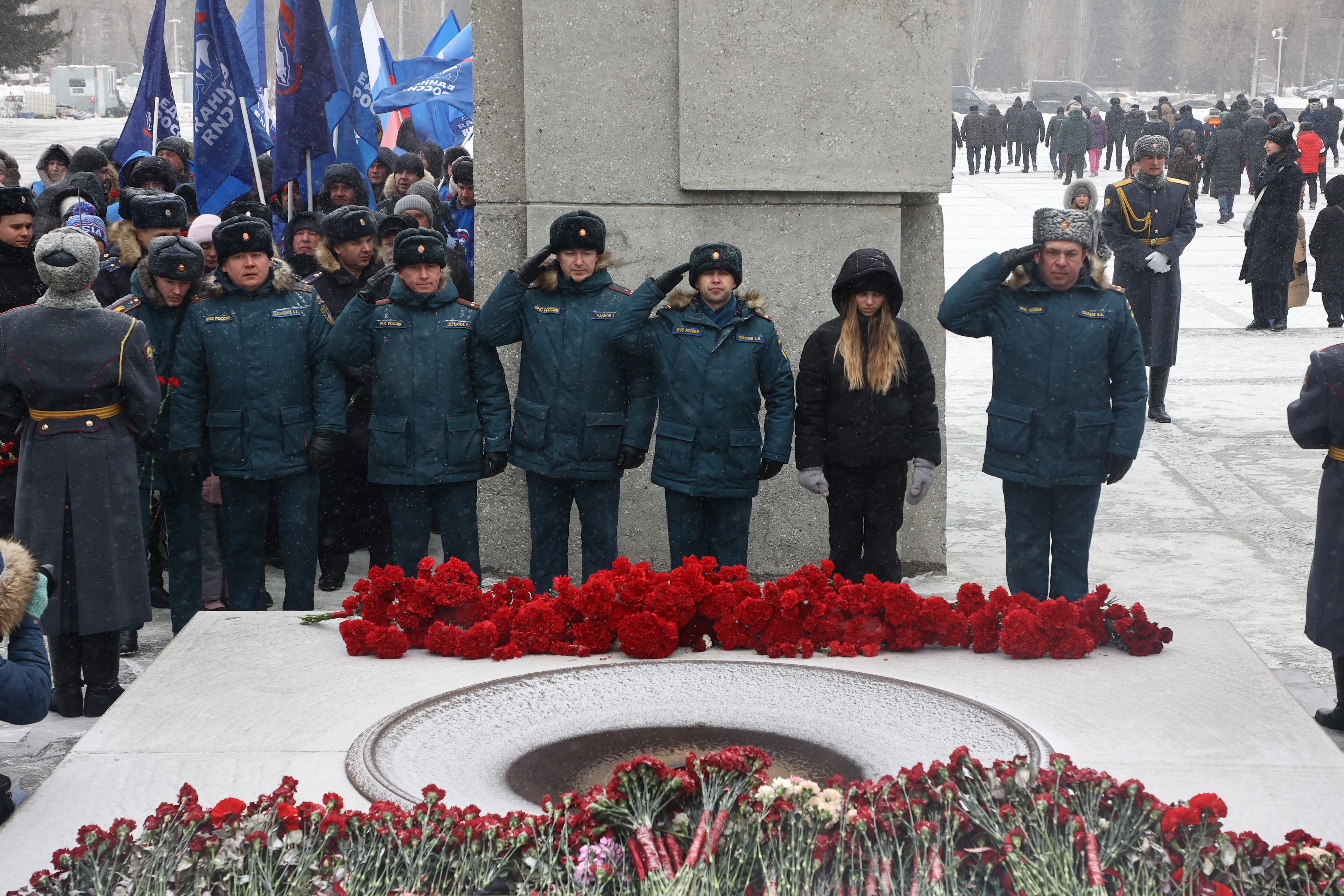 Мэр и губернатор возложили цветы к Вечному огню Монумента Славы: фото