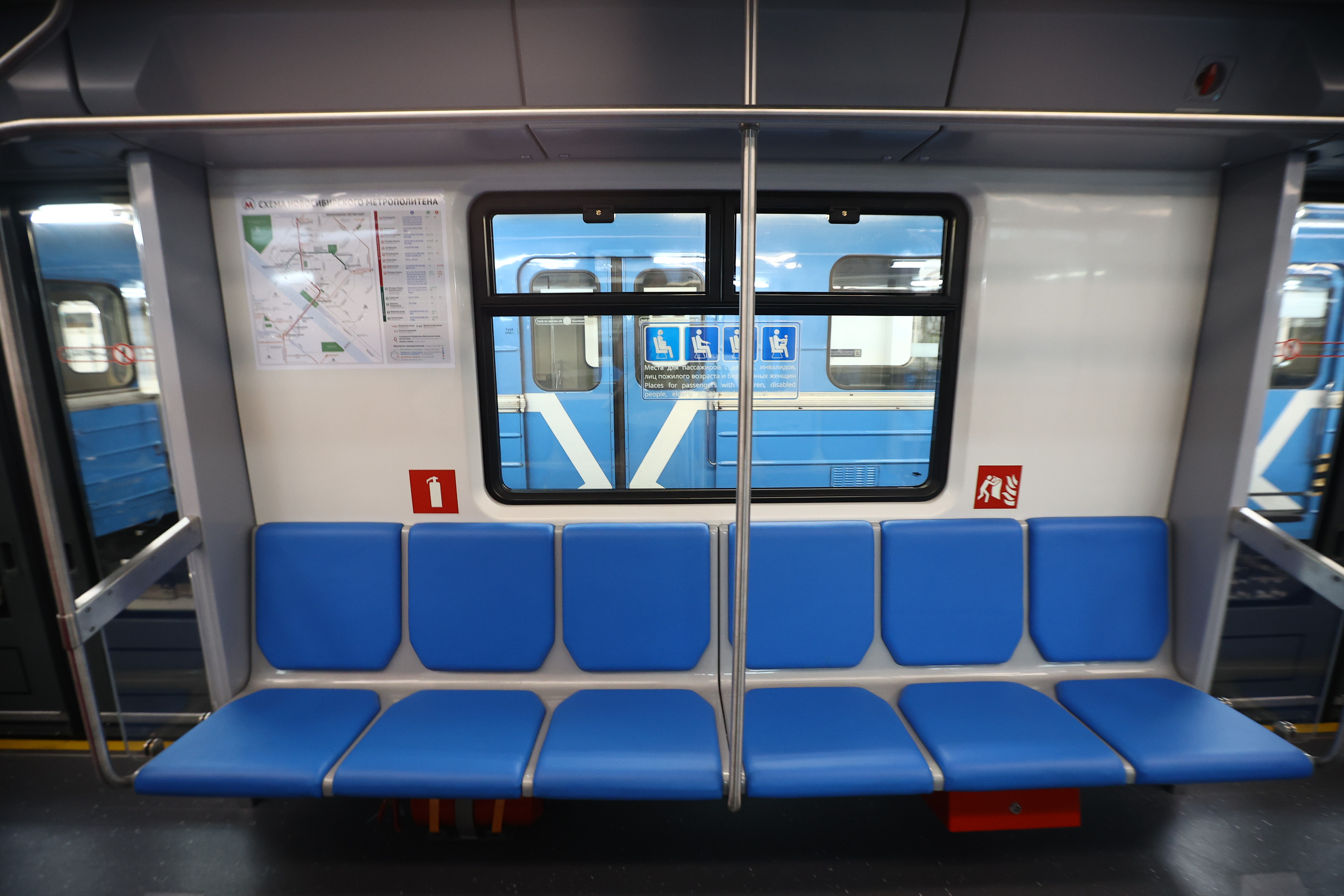 Для поезда разработали особое оформление кузова и салона с учётом особенностей работы метро Новосибирска. Внутри установили эргономичные сиденья из износостойкого винила, USB-порты для зарядки мобильных устройств, камеры видеонаблюдения, информационные табло. На полу уложили устойчивое к загрязнениям покрытие с защитой от скольжения. Ширину дверей увеличили до 1,4 метра.