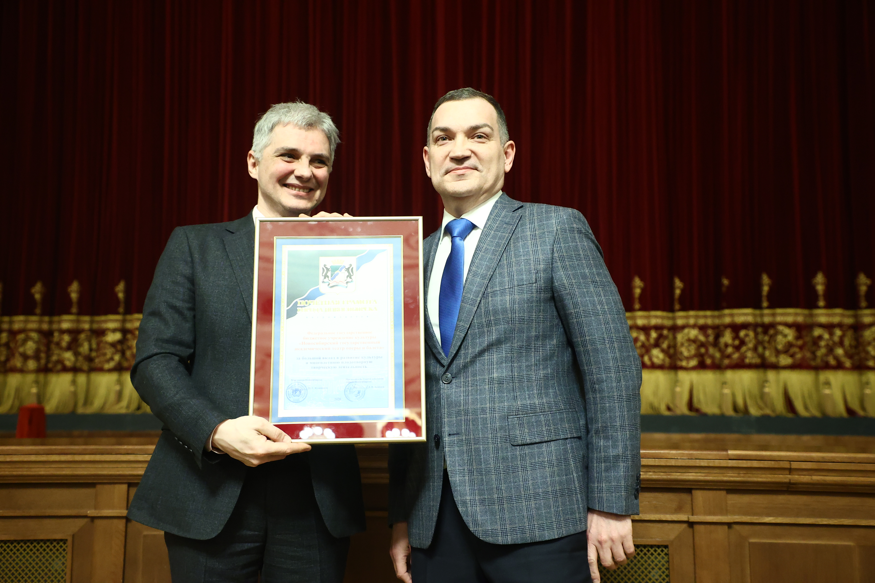 Глава Новосибирска Максим Кудрявцев побывал в НОВАТе, чтобы поздравить его коллектив с прошедшими праздниками: Днём театра и Днём культуры.