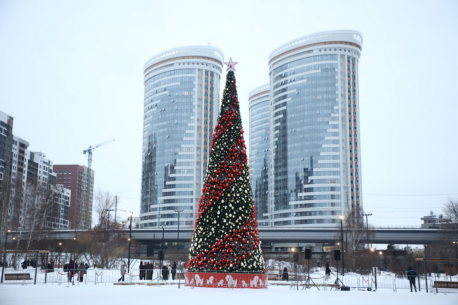 В новом парке в центре Новосибирска залили каток и установили ёлку. Сегодня, 25 декабря, праздничная площадка у заксобрания официально заработала.