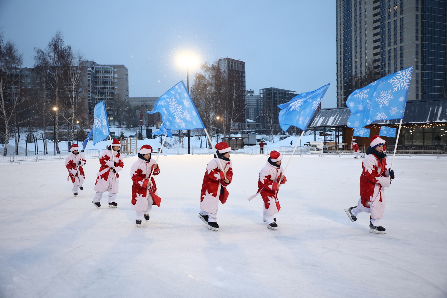 В честь открытия устроили концерт, выступления фигуристов и хороводы, в которых активно участвовали гости. Этой зимой здесь будут работать ледовая площадка, пункт проката коньков, визит-центр и кафе.