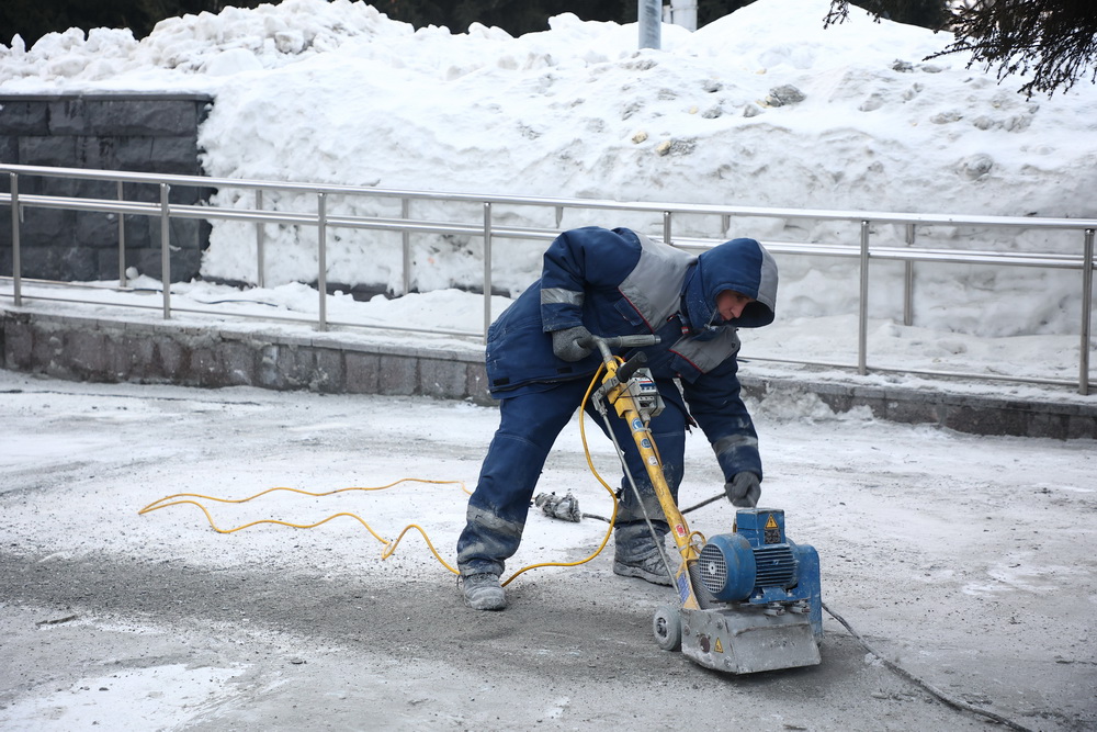 «На данный момент ведутся работы по грубой шлифовке швов бетона. Её можно проводить при отрицательных температурах. Дожидаемся потепления и выходим на финишную шлифовку, потому что технология подразумевает использование воды», — отметил директор Горзеленхоза Станислав Веремьёв.