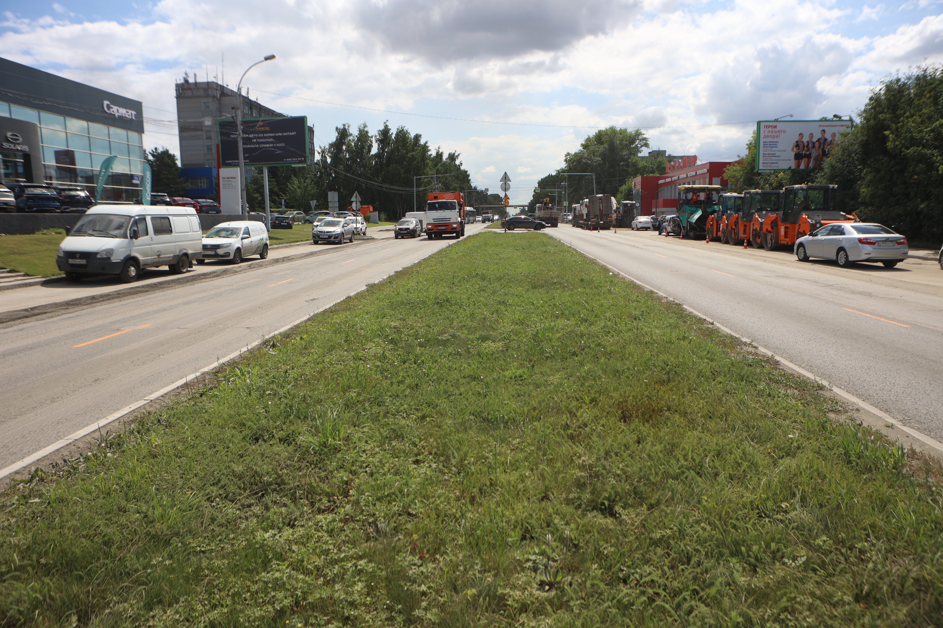 АО «Новосибирскавтодор» трудится здесь с 1 июля. Уже полностью сняли старый асфальт, провели фрезерование. Уложили пробное полотно и проверили его качество в лаборатории. В ночь на 10 июля приступили к обустройству верхнего слоя.
