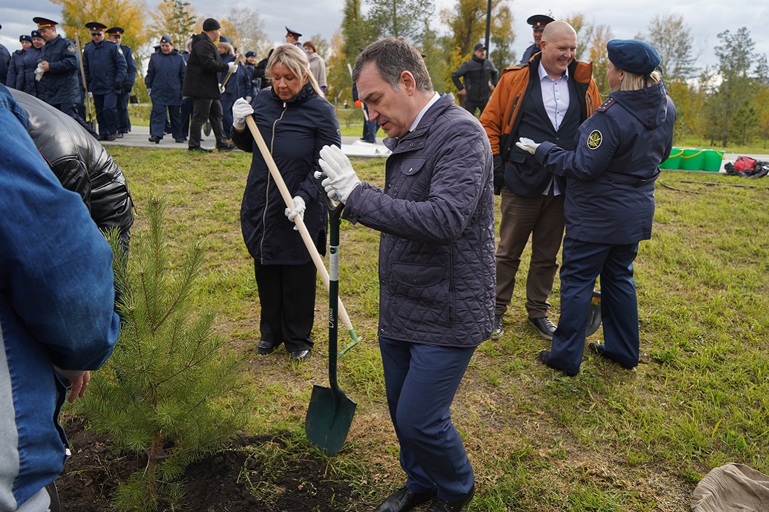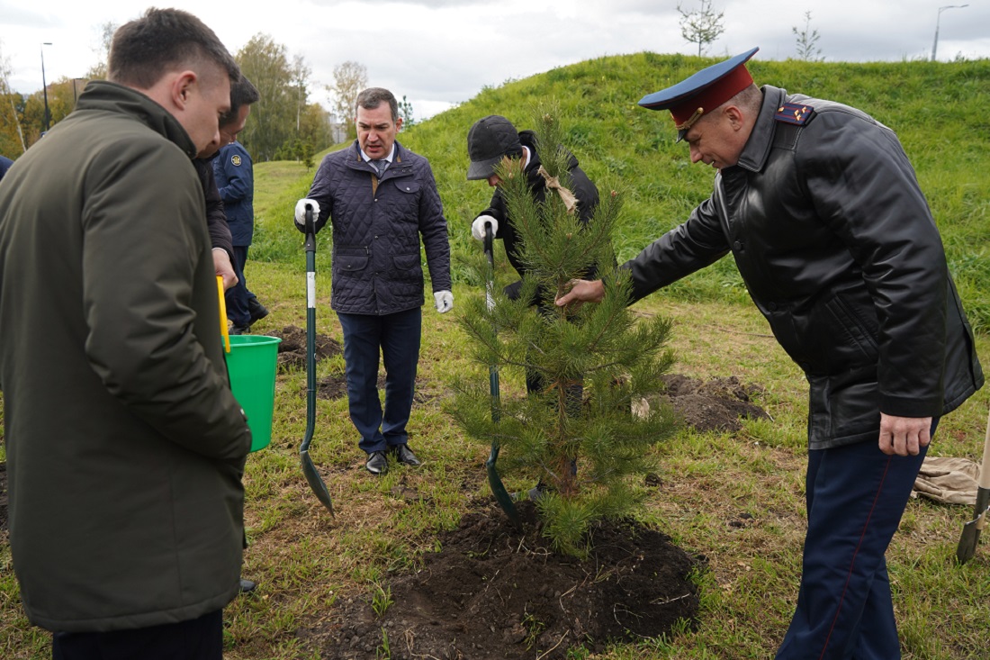 Мэр Кудрявцев и сотрудники ГУФСИН высадили 145 сосен в парке «Арена»