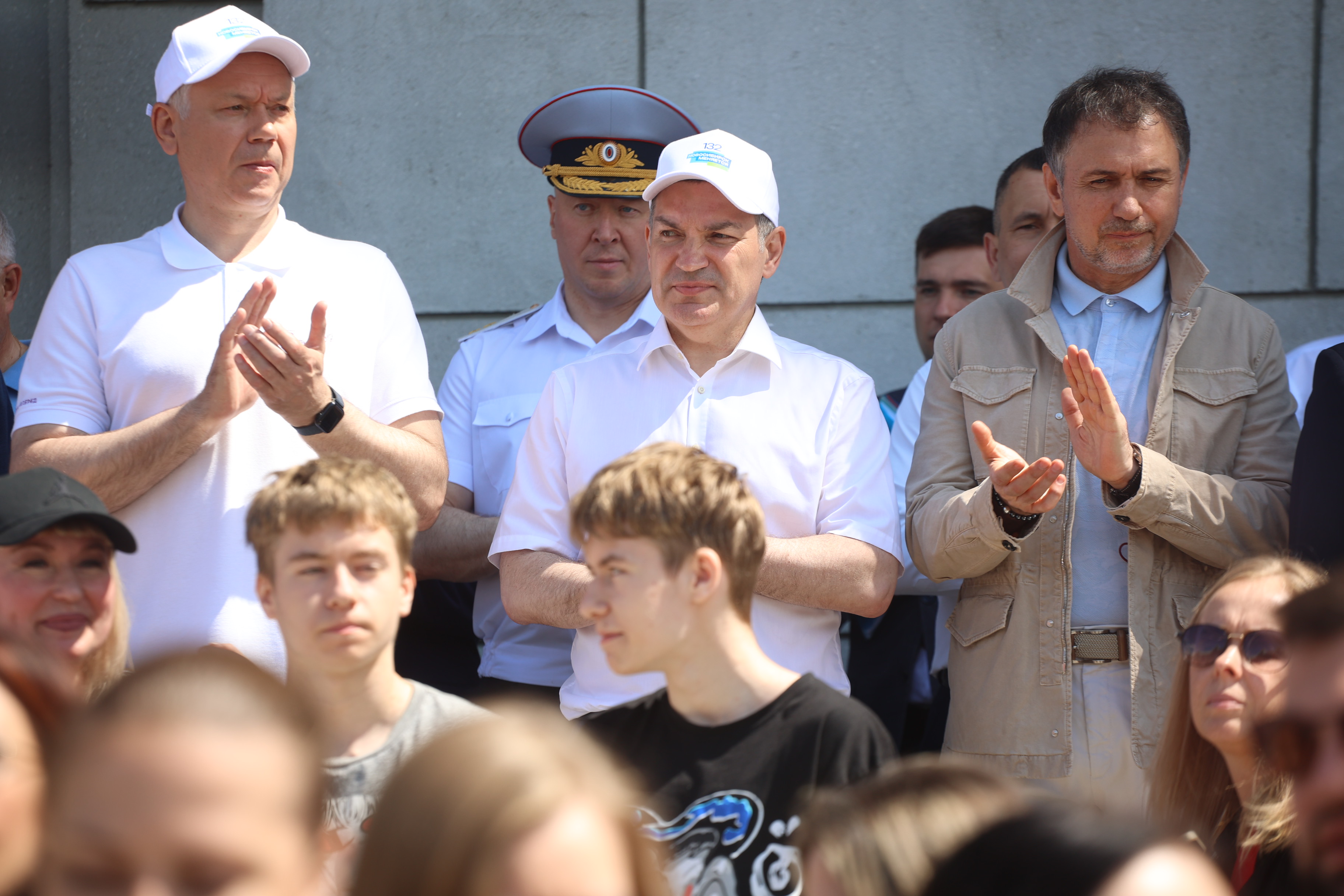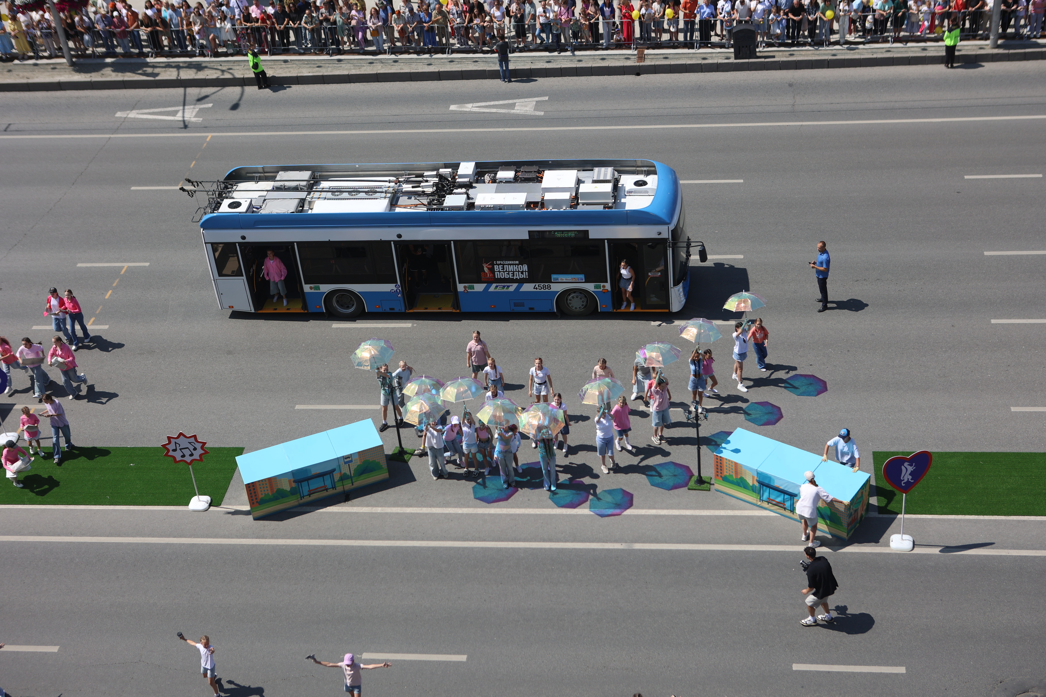 «Если вы не успели увидеть колонну в движении, техника будет стоять у здания №25 на Красном проспекте до 20:00. Приходите, рассматривайте машины вблизи, делайте фото и продолжайте отмечать наш общий праздник», — написал глава города в Telegram-канале.