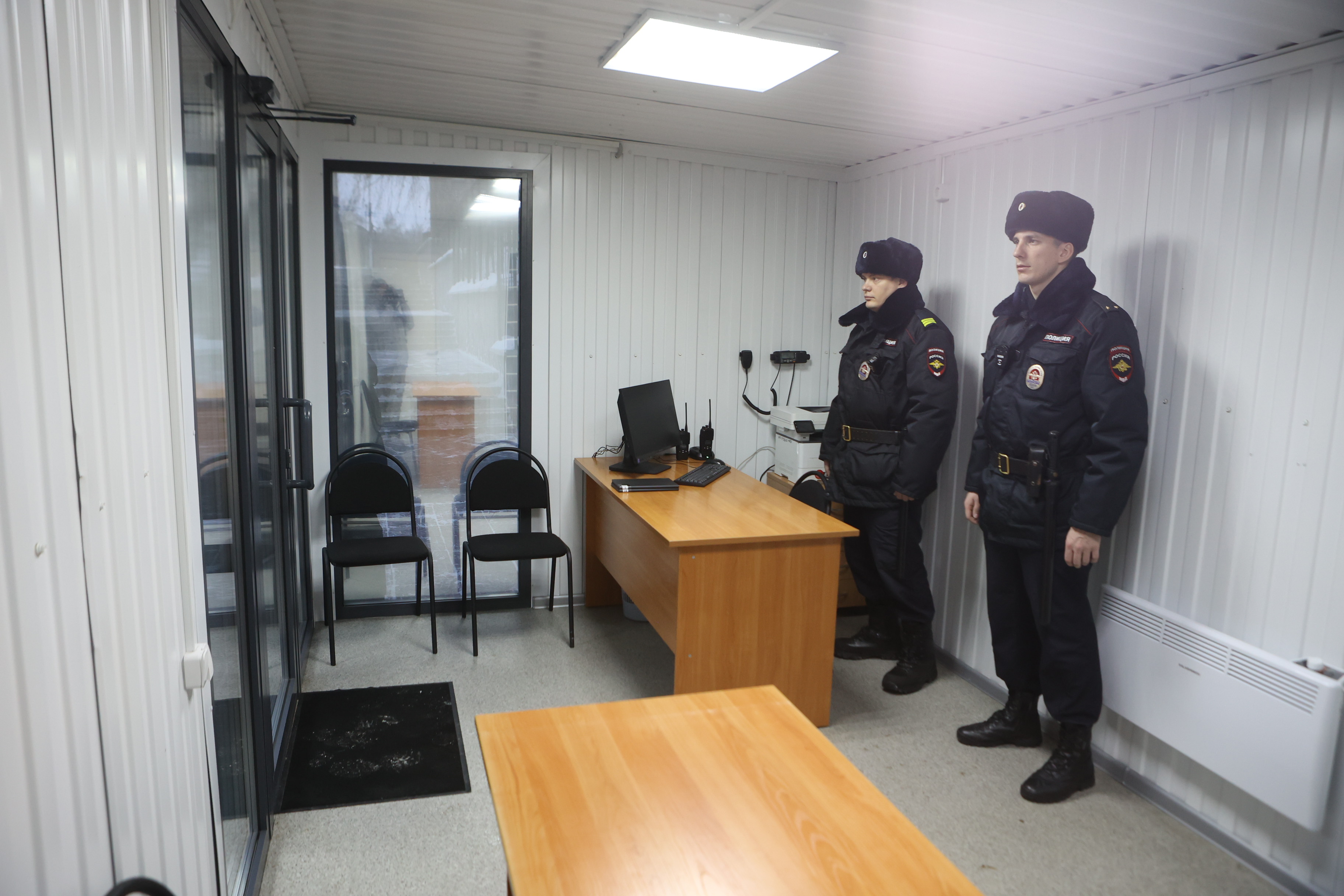 В модуле оборудовали места для составления протоколов, комнату отдыха и обеденную зону для сотрудников, помещение для задержанных.