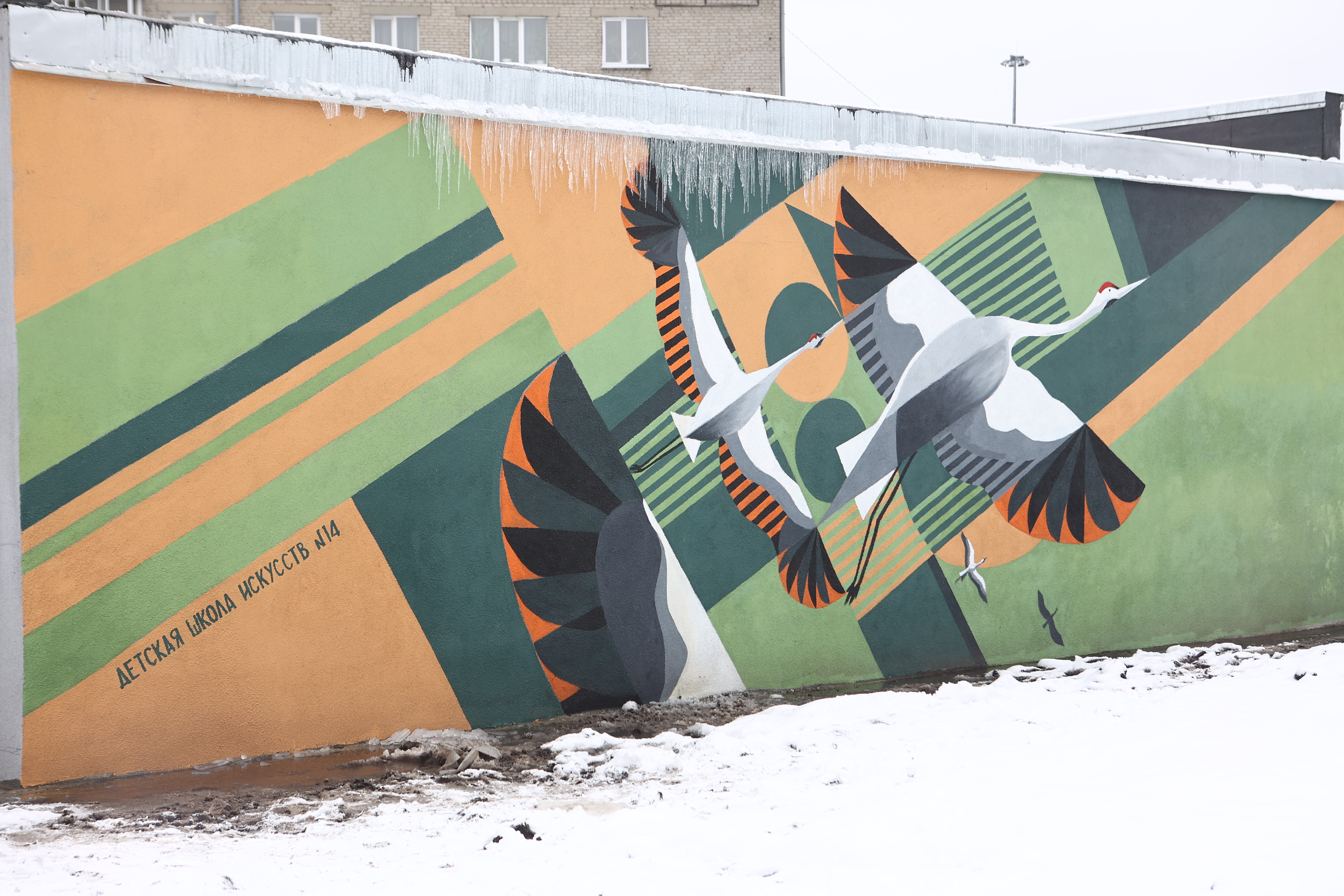 На месте металлических гаражей и стихийных парковок появились пешеходные дорожки с мощением в виде фортепианных клавиш, детская площадка со спортивными тренажёрами, арт-объект «Звёзды» и деревянные скамейки. Обустроили пространство для выступлений юных артистов, отремонтировали старый ЦТП, украсив его росписью в виде журавлей. Для освещения поставили фонари в виде музыкантов, работающие на солнечных батареях.