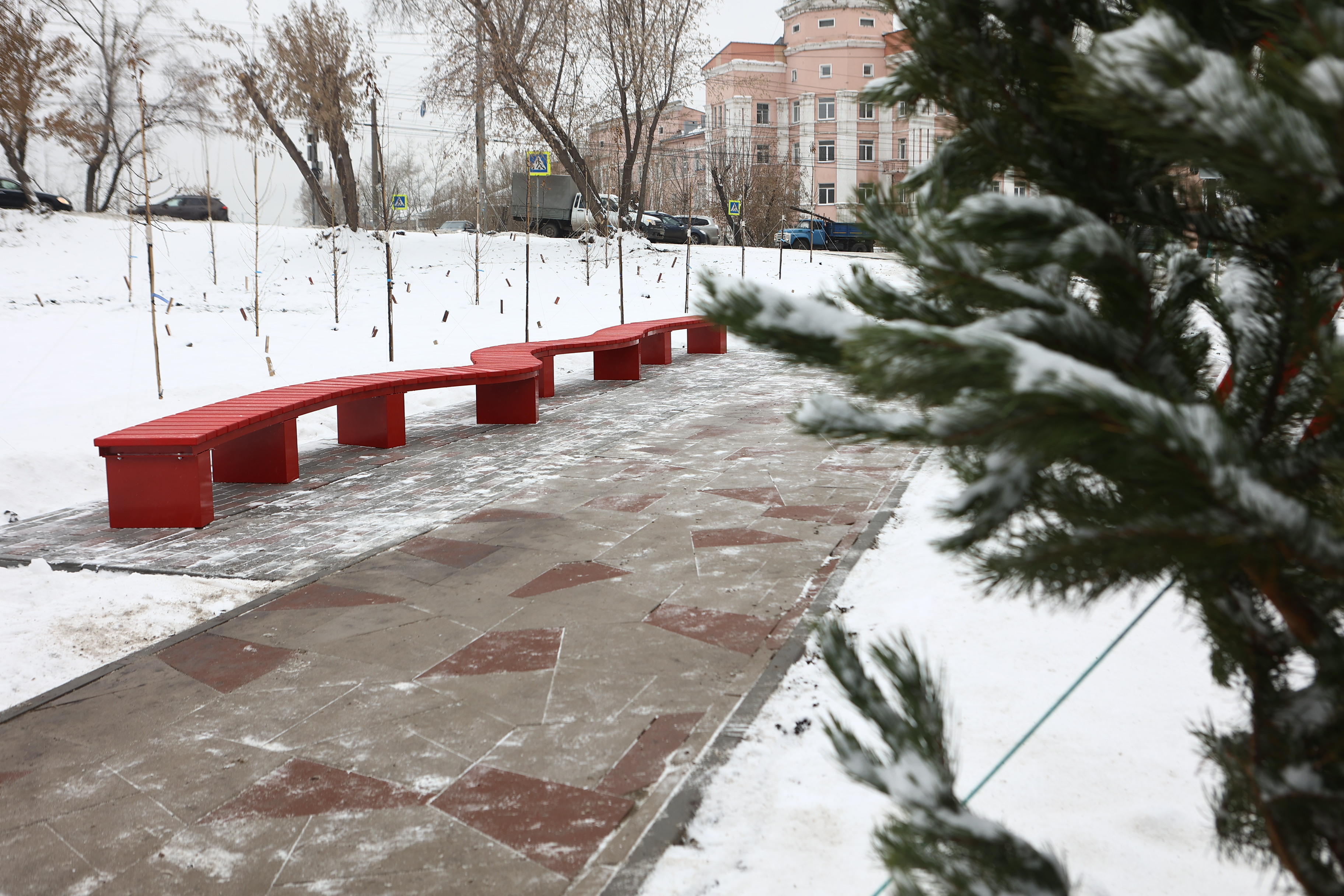 Новую зелёную зону с оригинальным дизайном открыли в пятницу, 7 ноября, на улице Лазарева. Территорию возле музыкальной школы №3 посвятили искусству и героям Великой Отечественной войны.