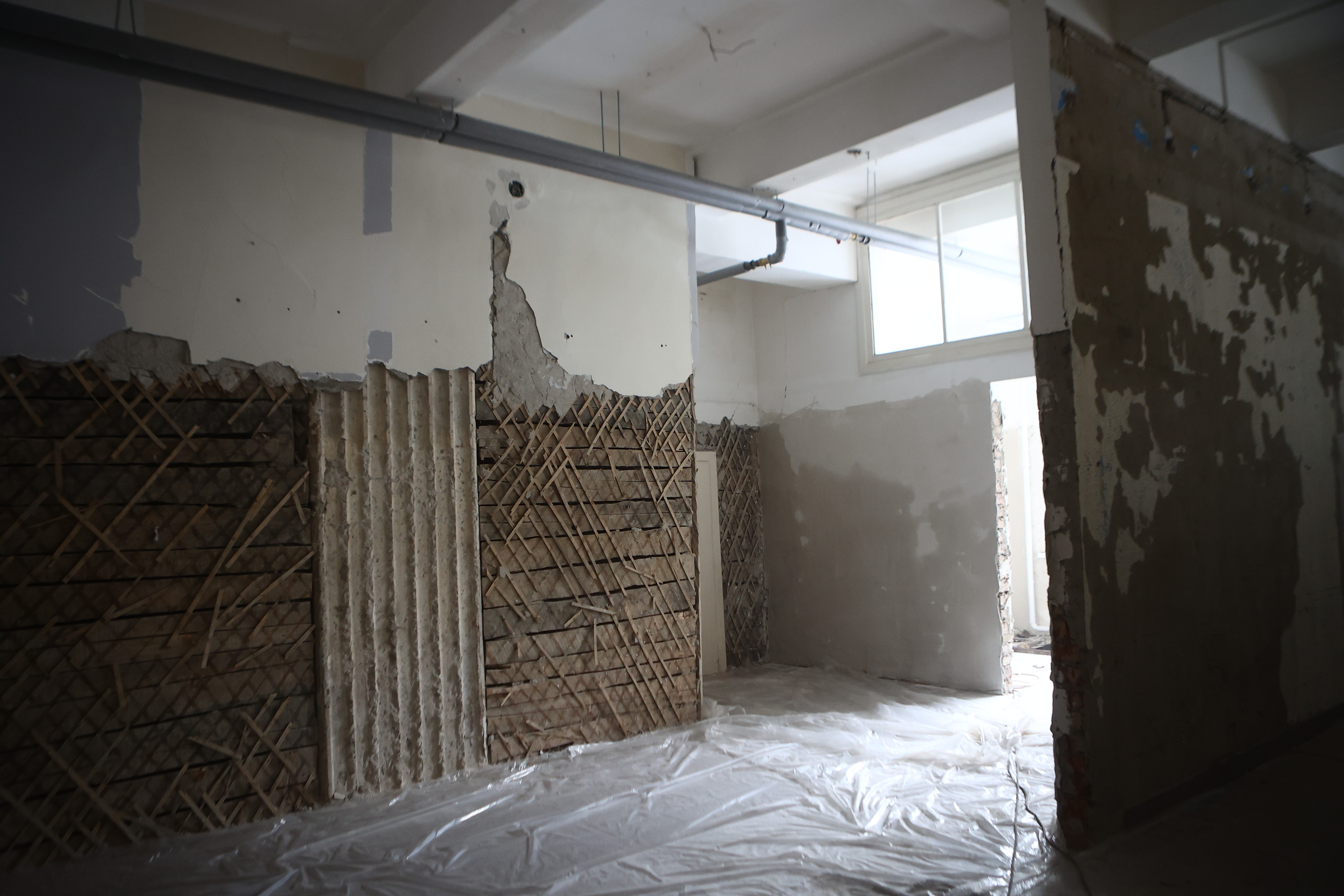 Сейчас заканчивают отделку и электромонтажную часть на первом этаже и в актовом зале.