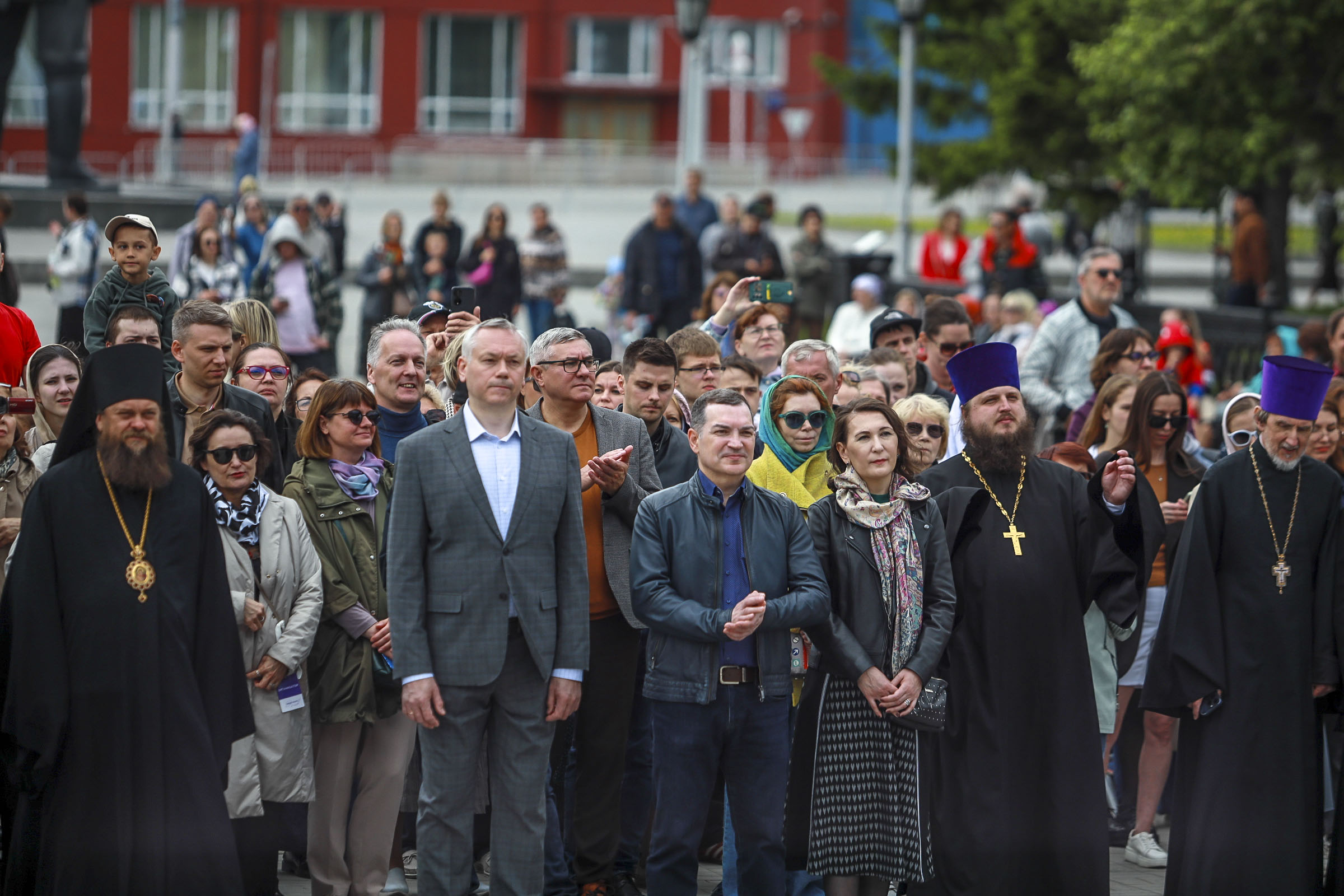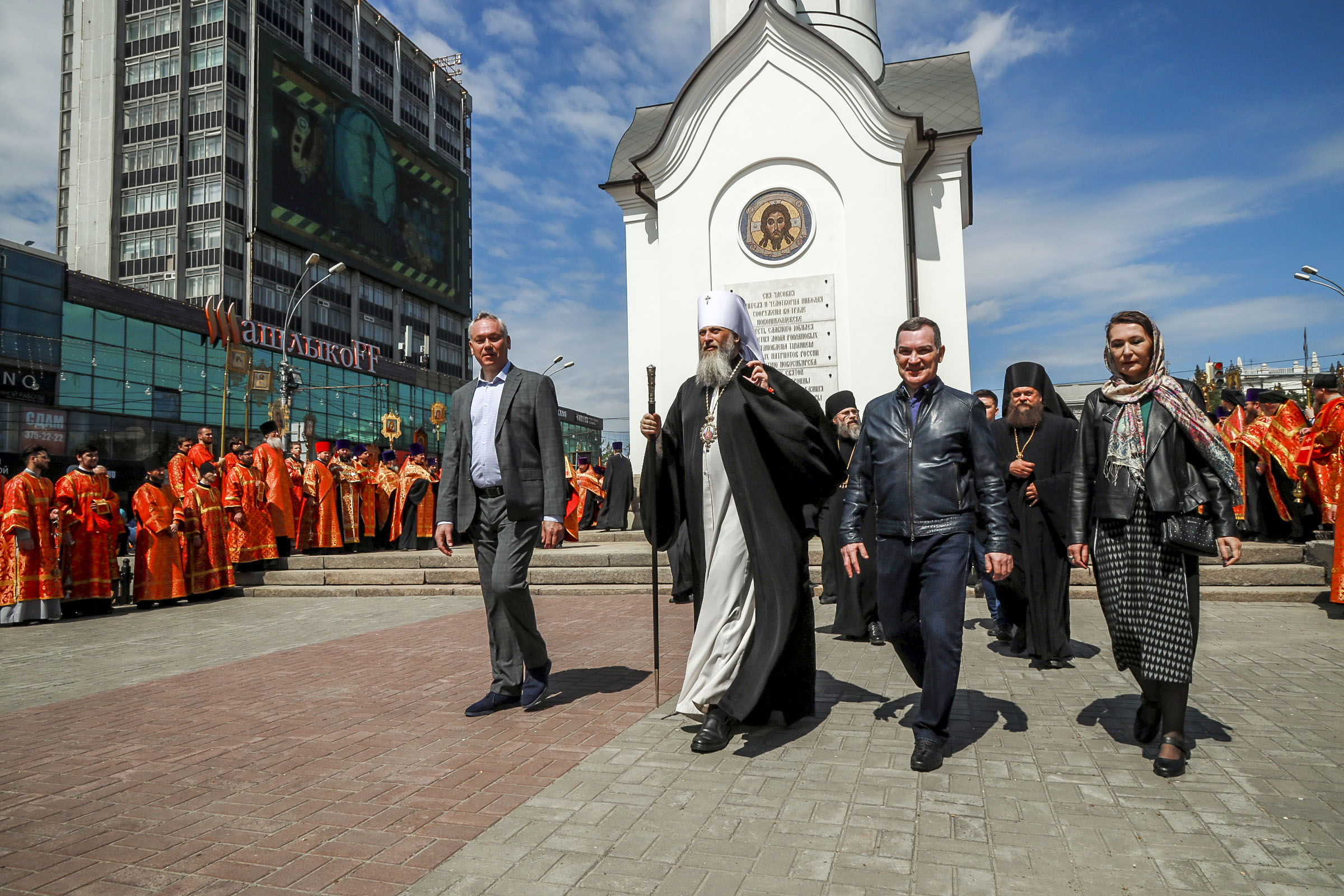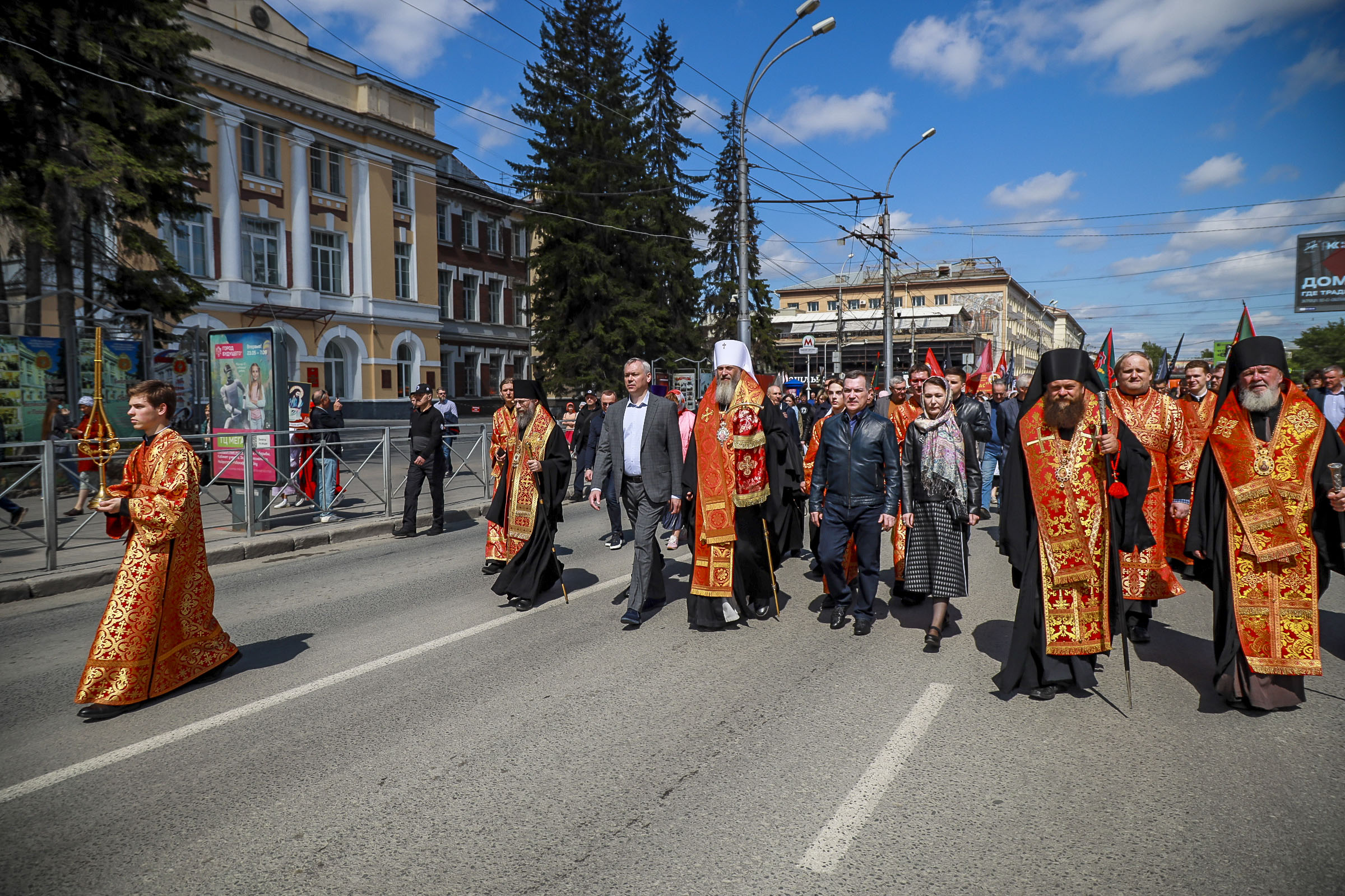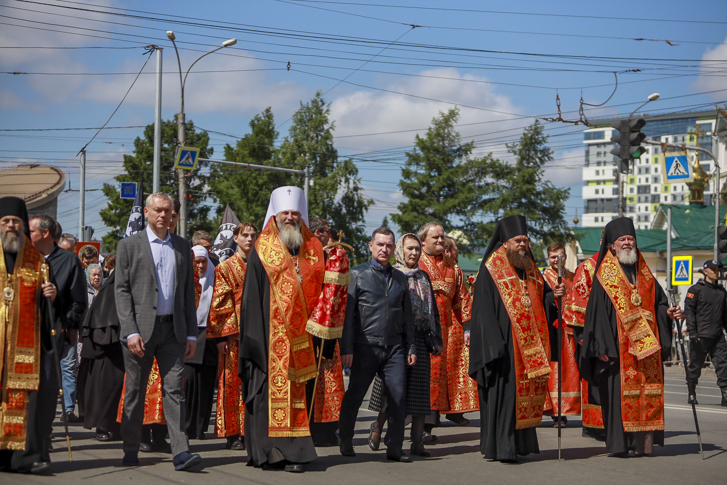 Возглавляли процессию митрополит Новосибирский и Бердский Никодим, губернатор Андрей Травников и мэр Максим Кудрявцев.