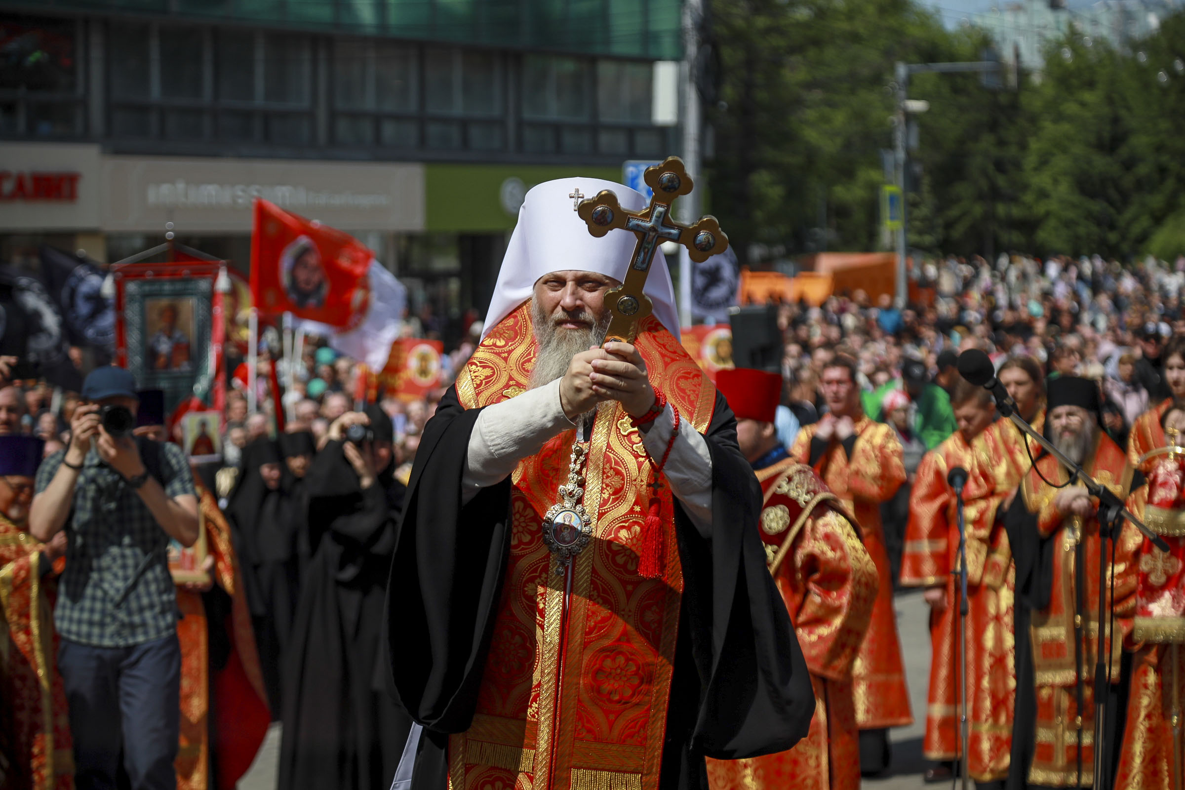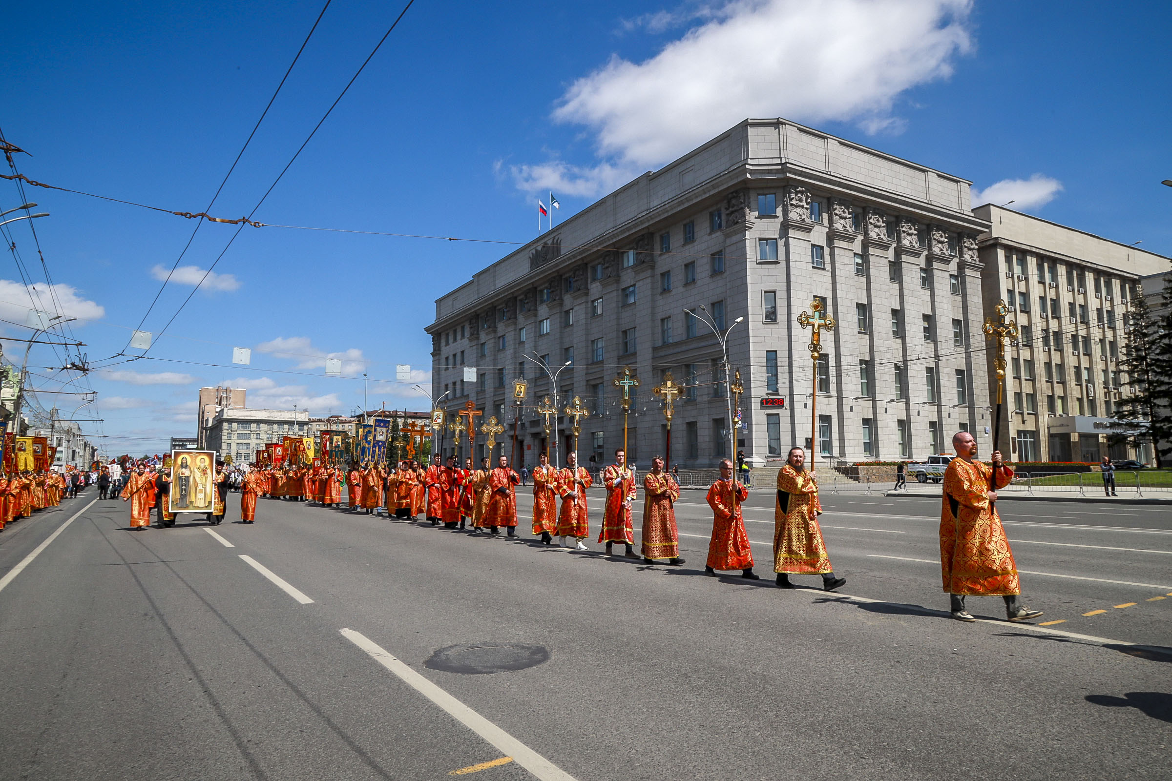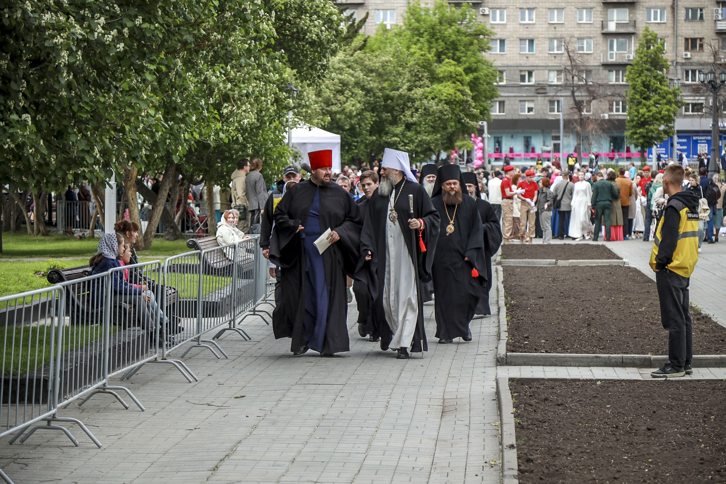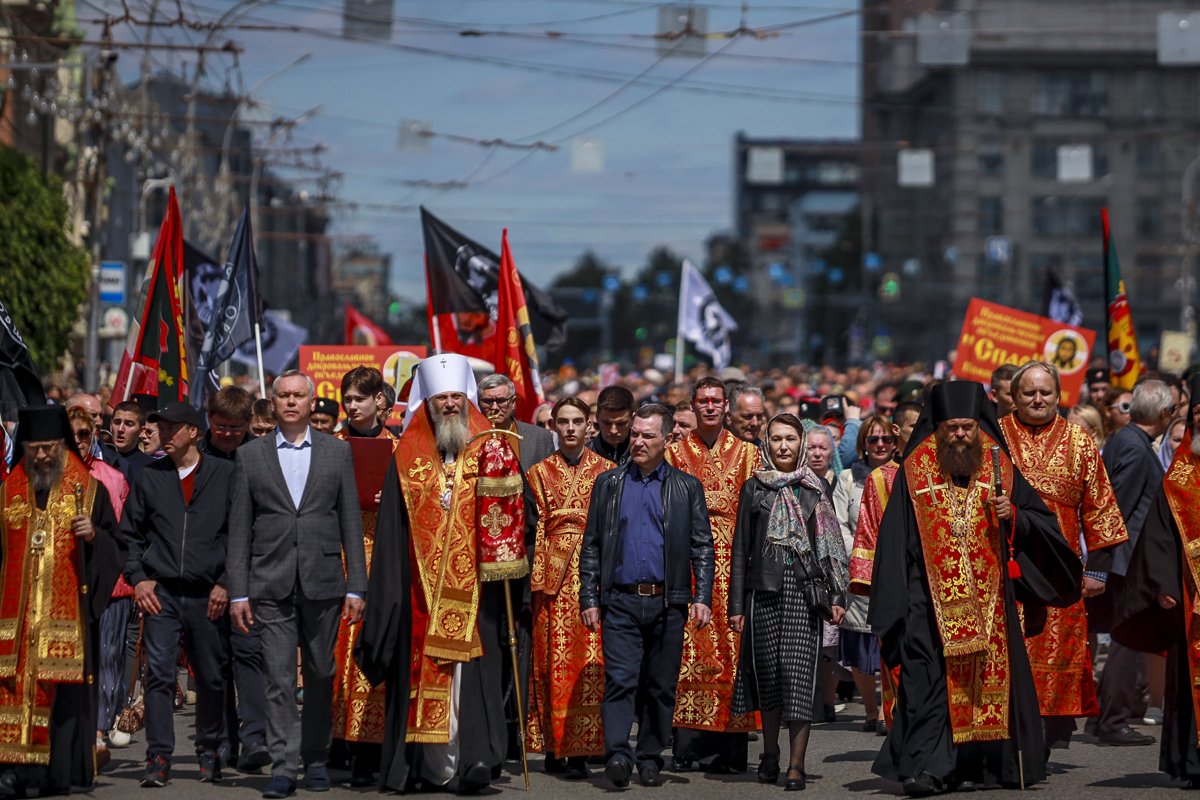 Возглавляли процессию митрополит Новосибирский и Бердский Никодим, губернатор Андрей Травников и мэр Максим Кудрявцев.